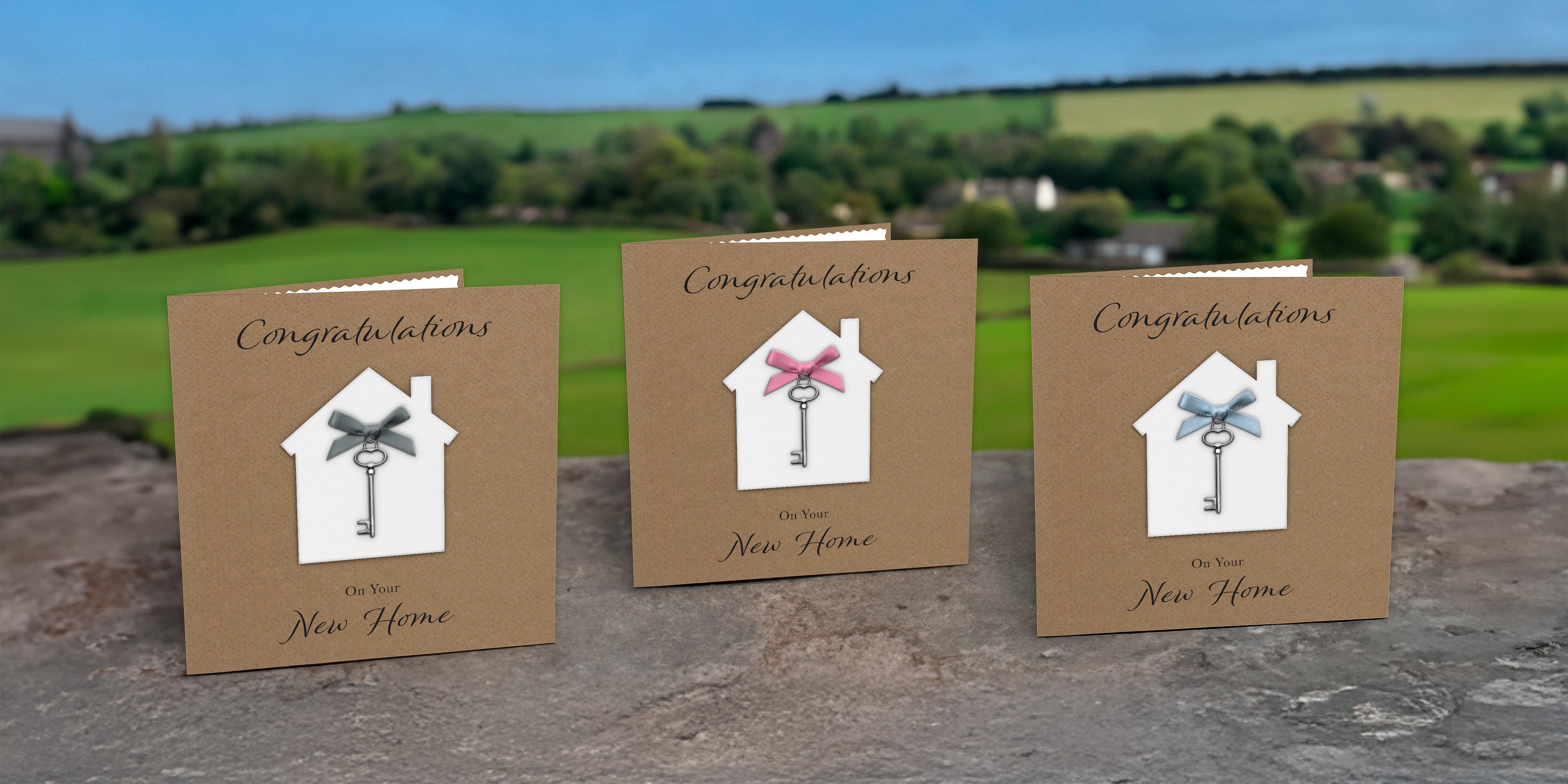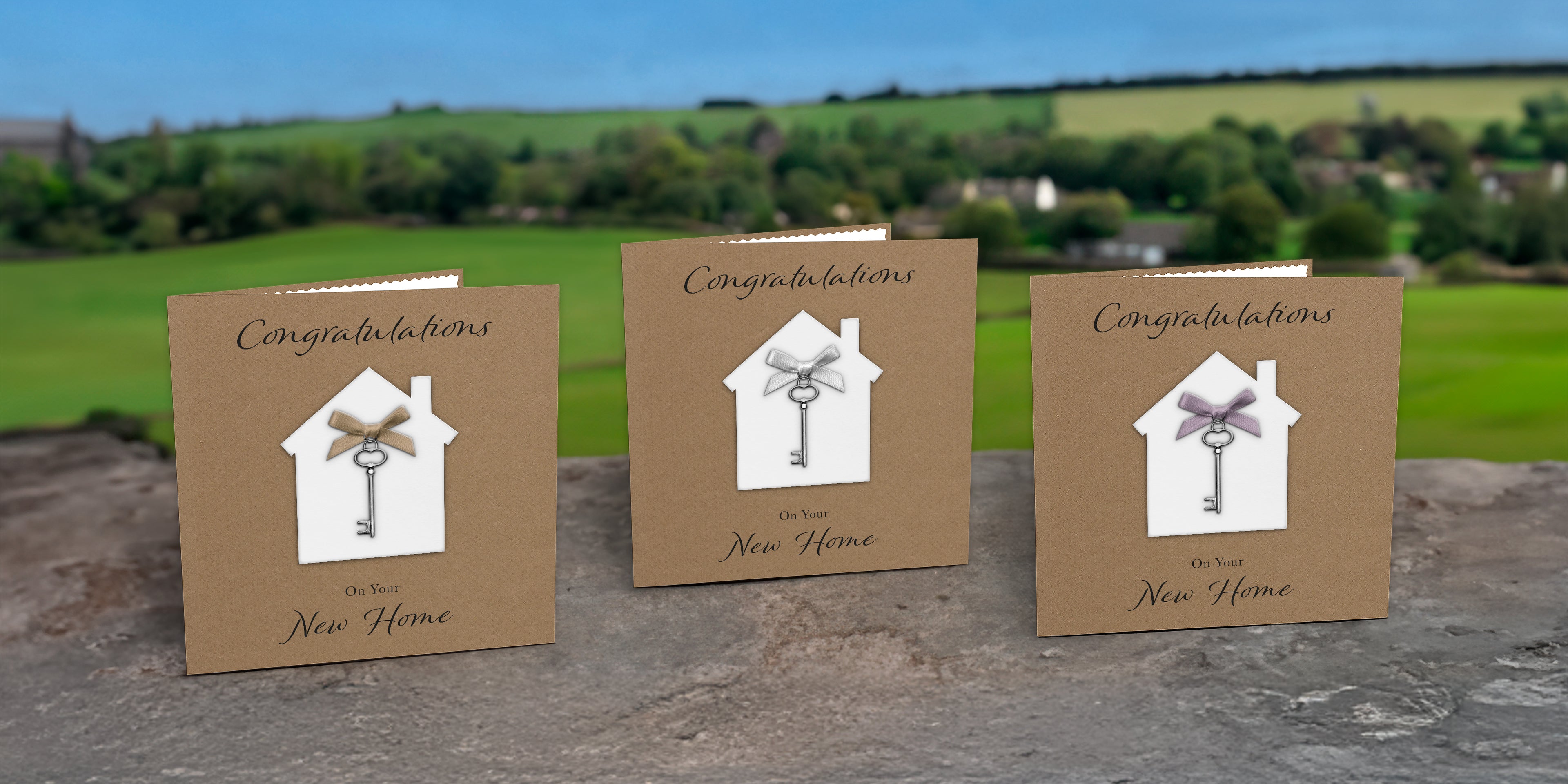New Home Card (Key Charm & Bow) - Kraft Cardstock - Grey Bow