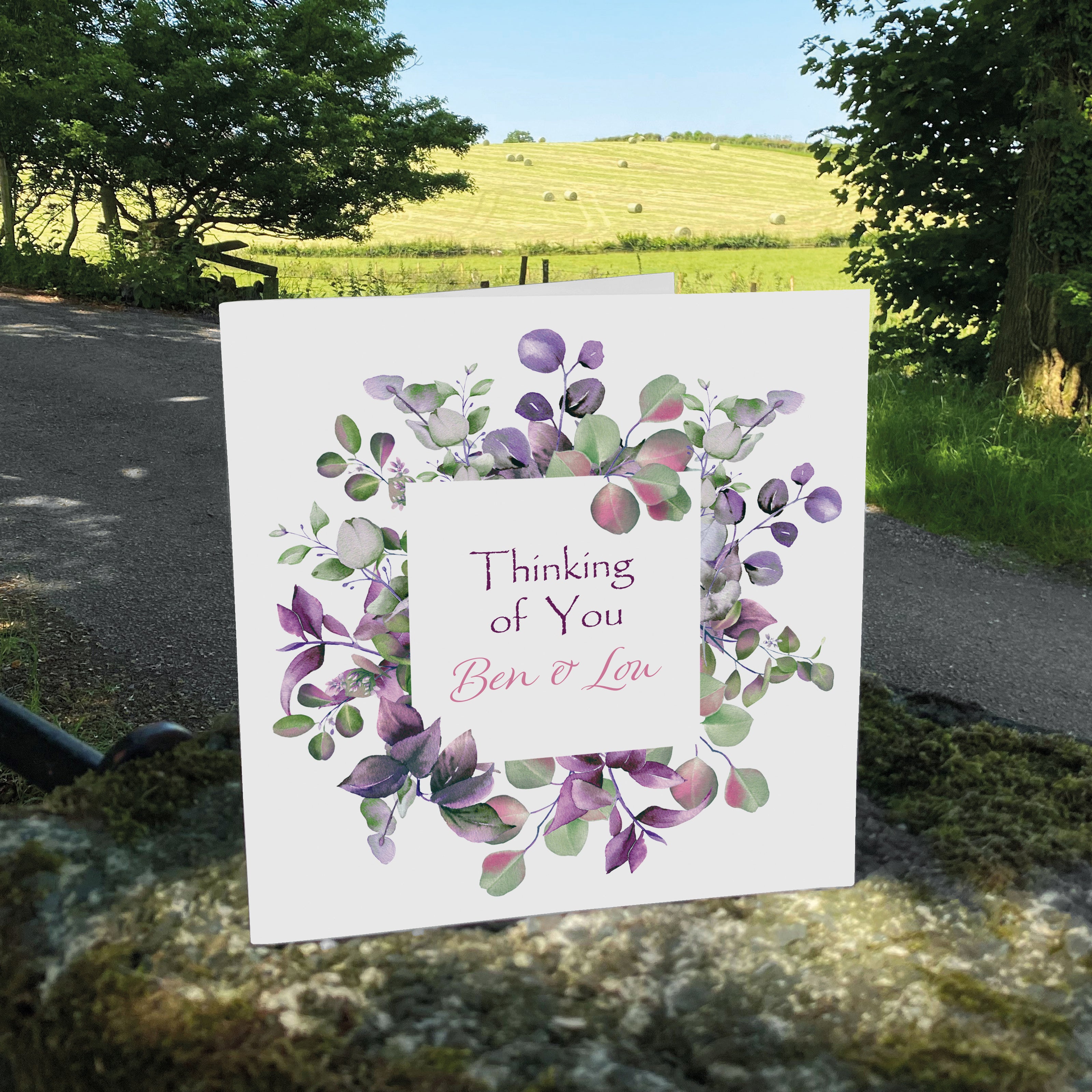 Personalised Thinking Of You Card (Foliage) - Lavender