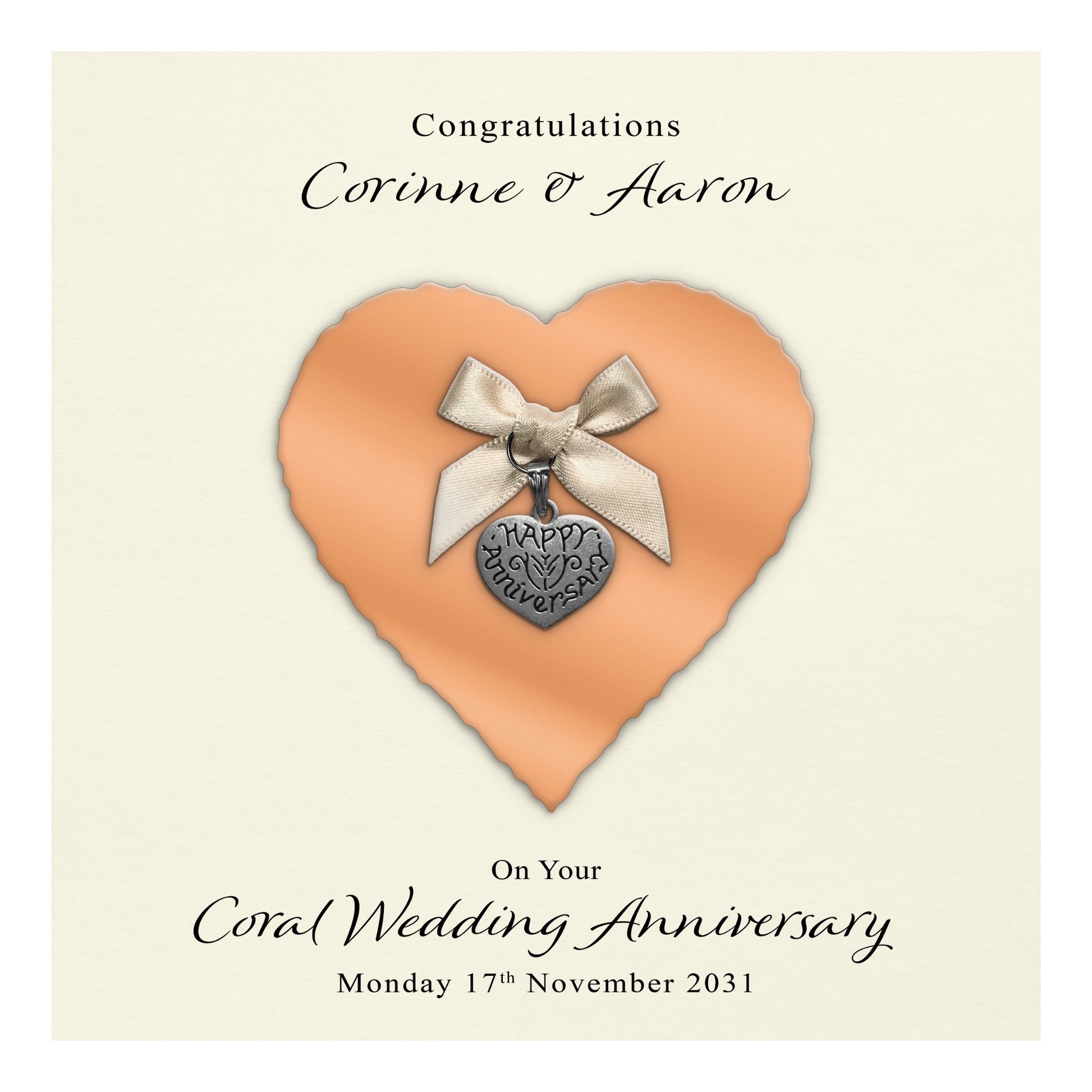 (Personalised) "Happy Anniversary" Heart Charm & Bow Greeting Cards.