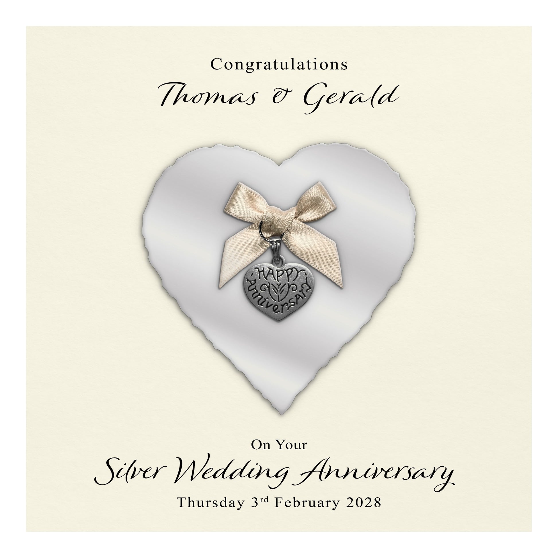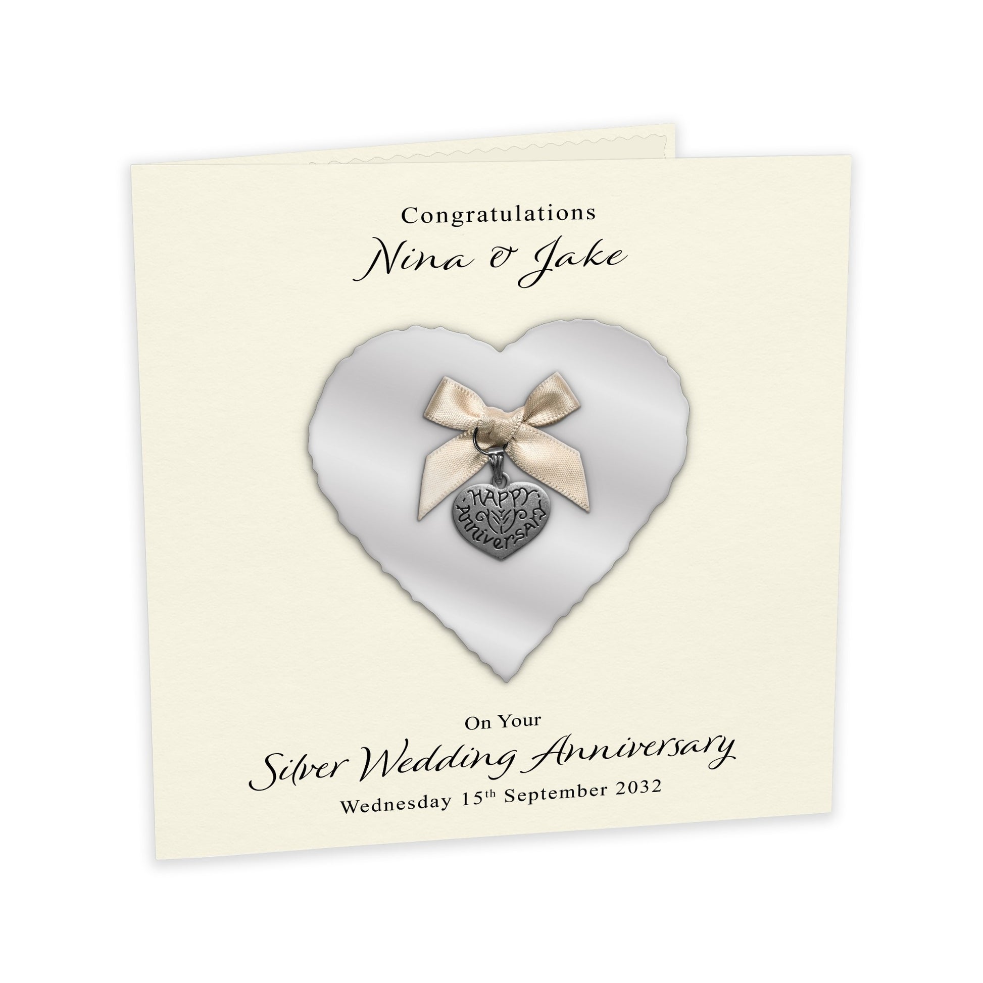 (Personalised) "Happy Anniversary" Heart Charm & Bow Greeting Cards.