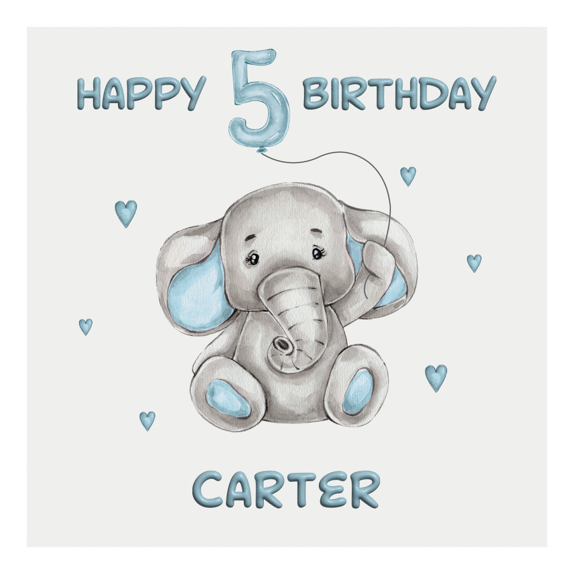 Personalised Birthday Card Balloon Animals (Elephant) - Blue