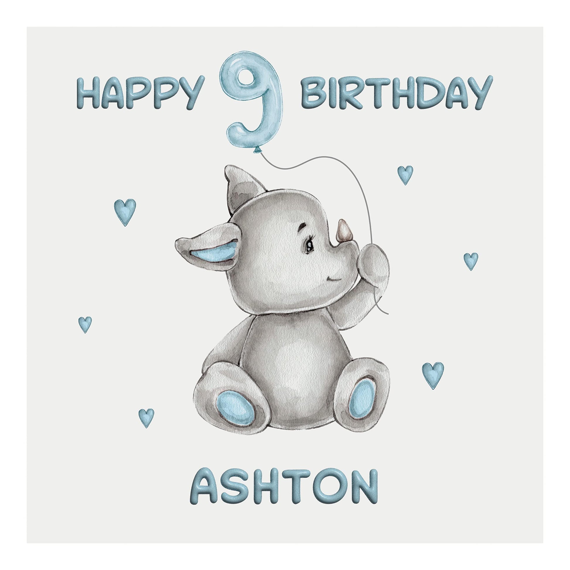 Personalised Birthday Card Balloon Animals (Rhino) - Blue