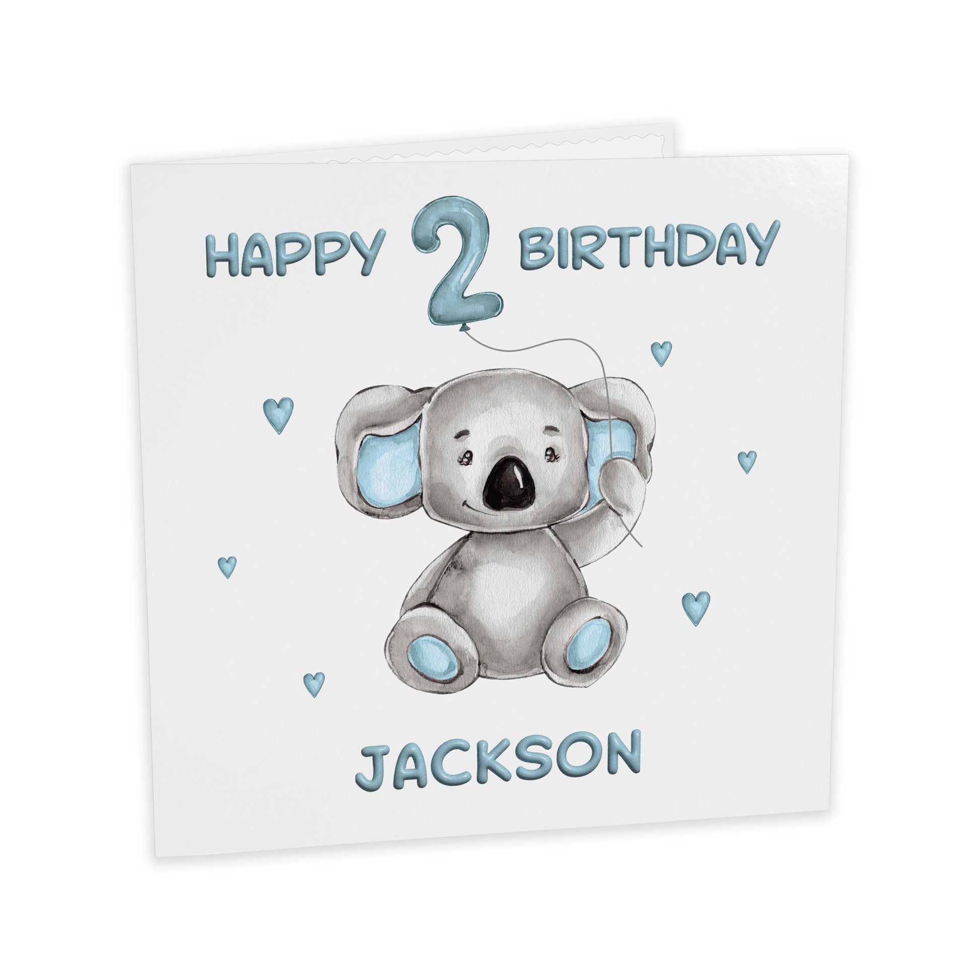 Personalised Birthday Card Balloon Animals (Koala) - Blue