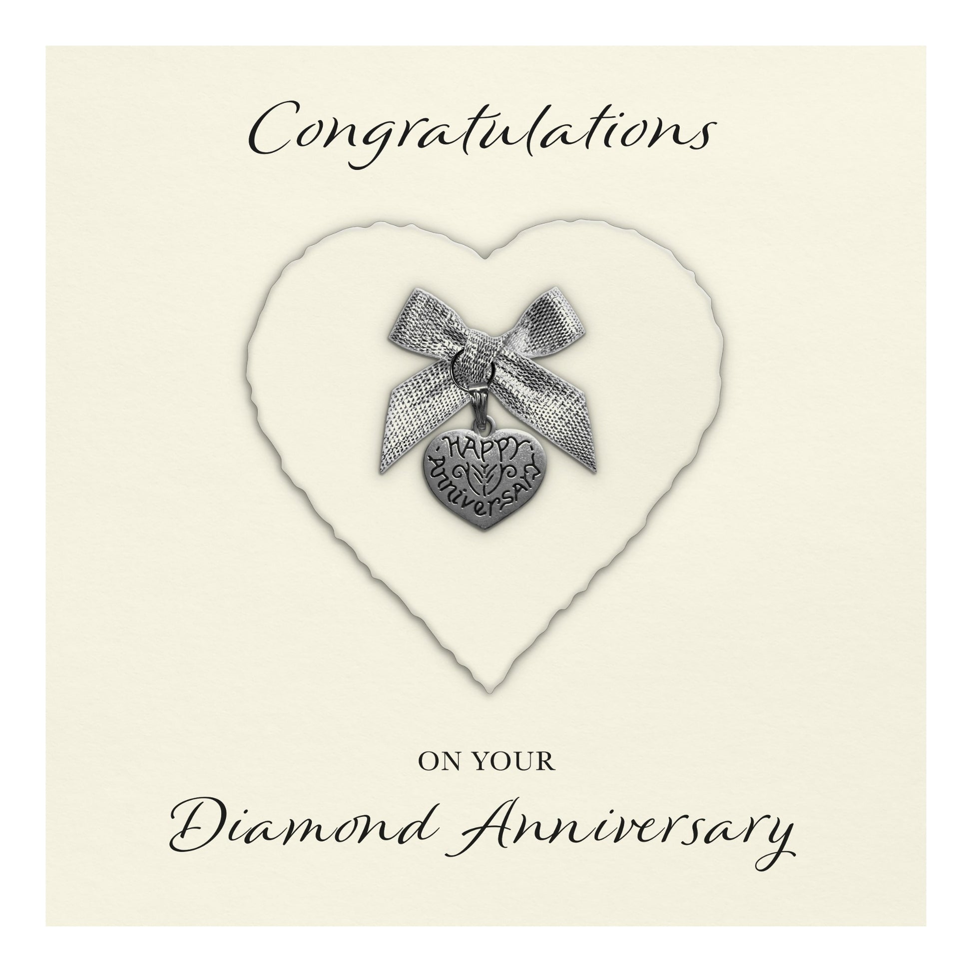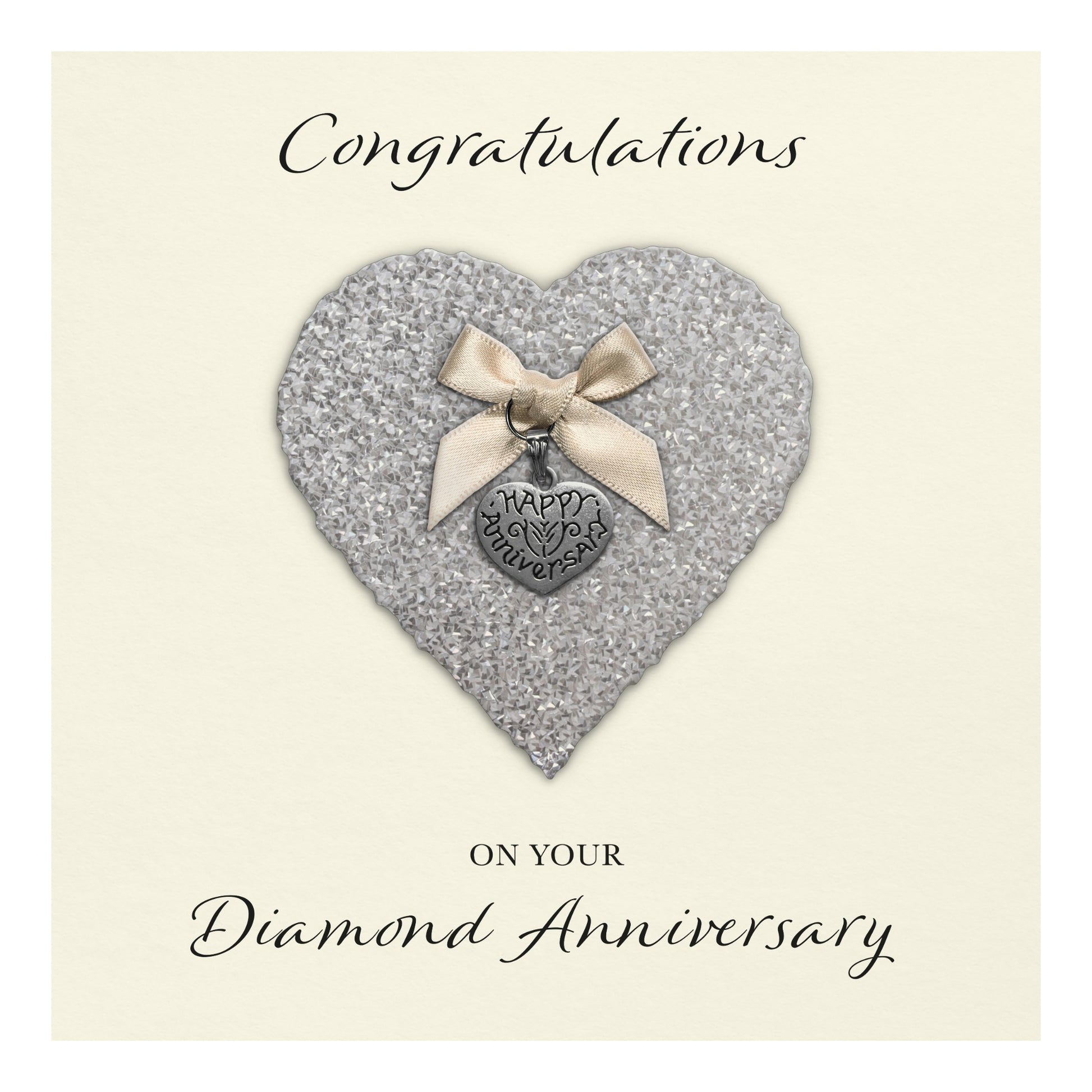 Diamond 60th Anniversary Card (Heart Charm & Bow) - Ivory Cardstock