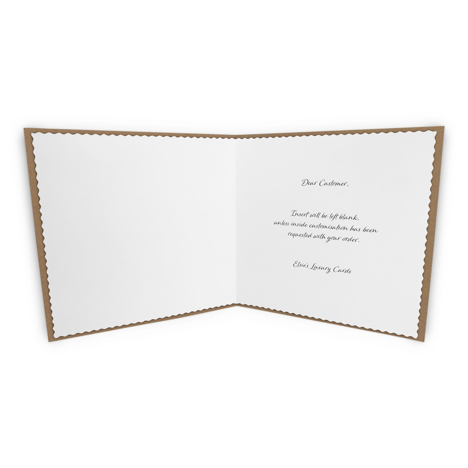 The design features a Raised House Shape Cardstock Panel in White with a carefully chosen texture, finished with a Hand-tied bow and a High-Quality Metal Charm. Your Personalised Text will be printed on the front design, a White Paper Insert then adds to the premium feel and leaves space for the option of either a Personalised Printed Message Inside or alternatively leave it Blank for a more sentimental handwritten message.