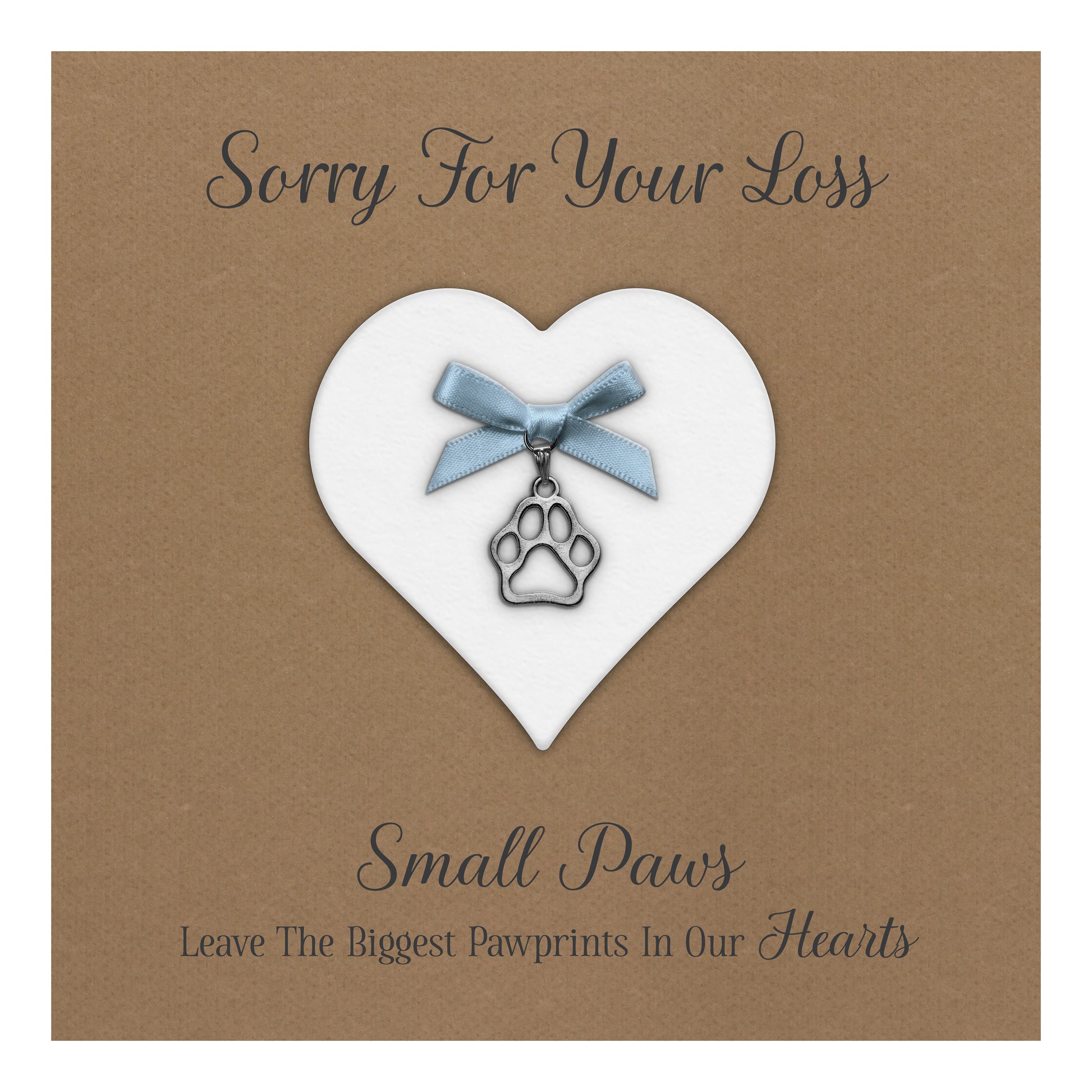 Pet Bereavement Card (Paw Charm & Bow) - Kraft Cardstock - Blue Bow