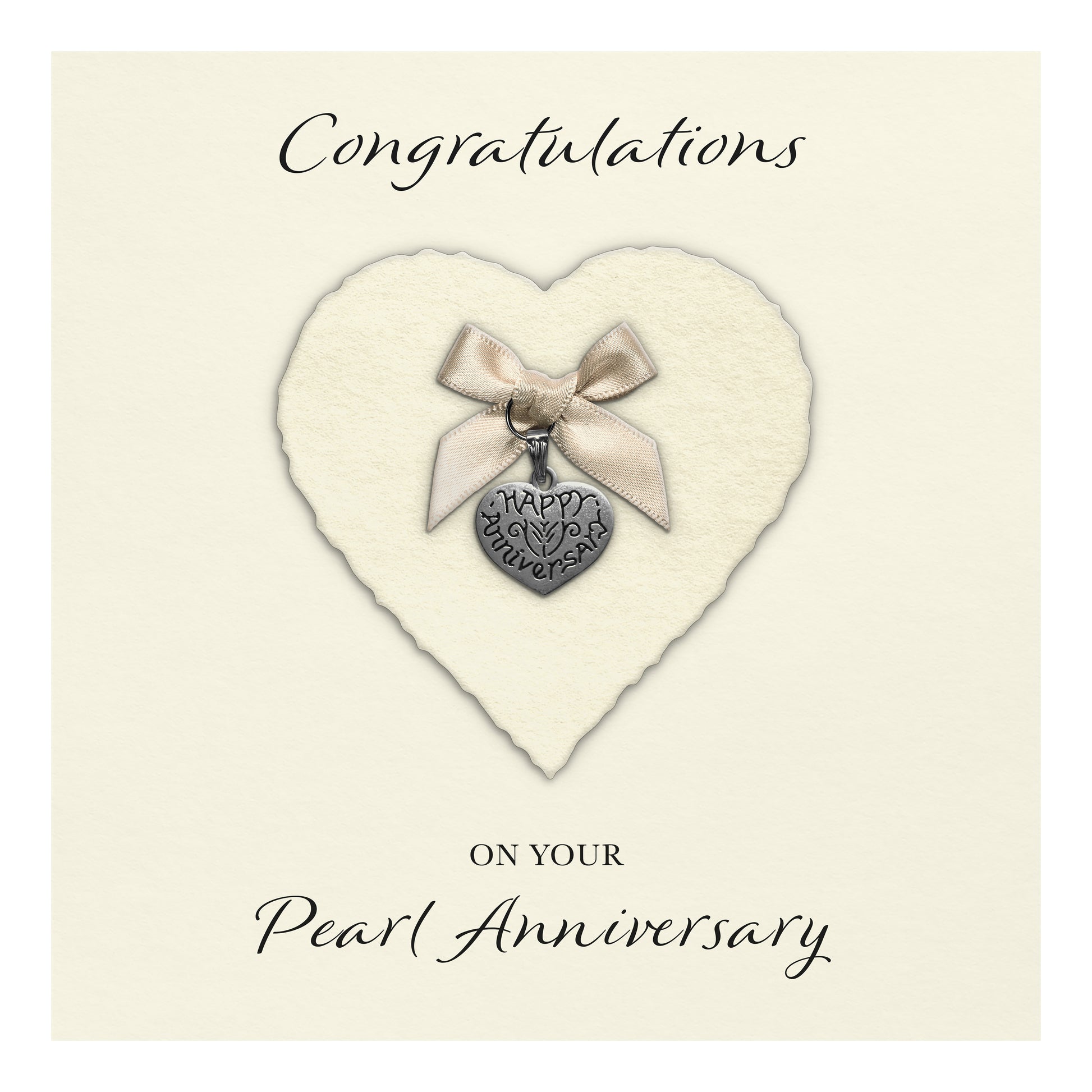 Pearl 30th Anniversary Card (Heart Charm & Bow) - Ivory Cardstock