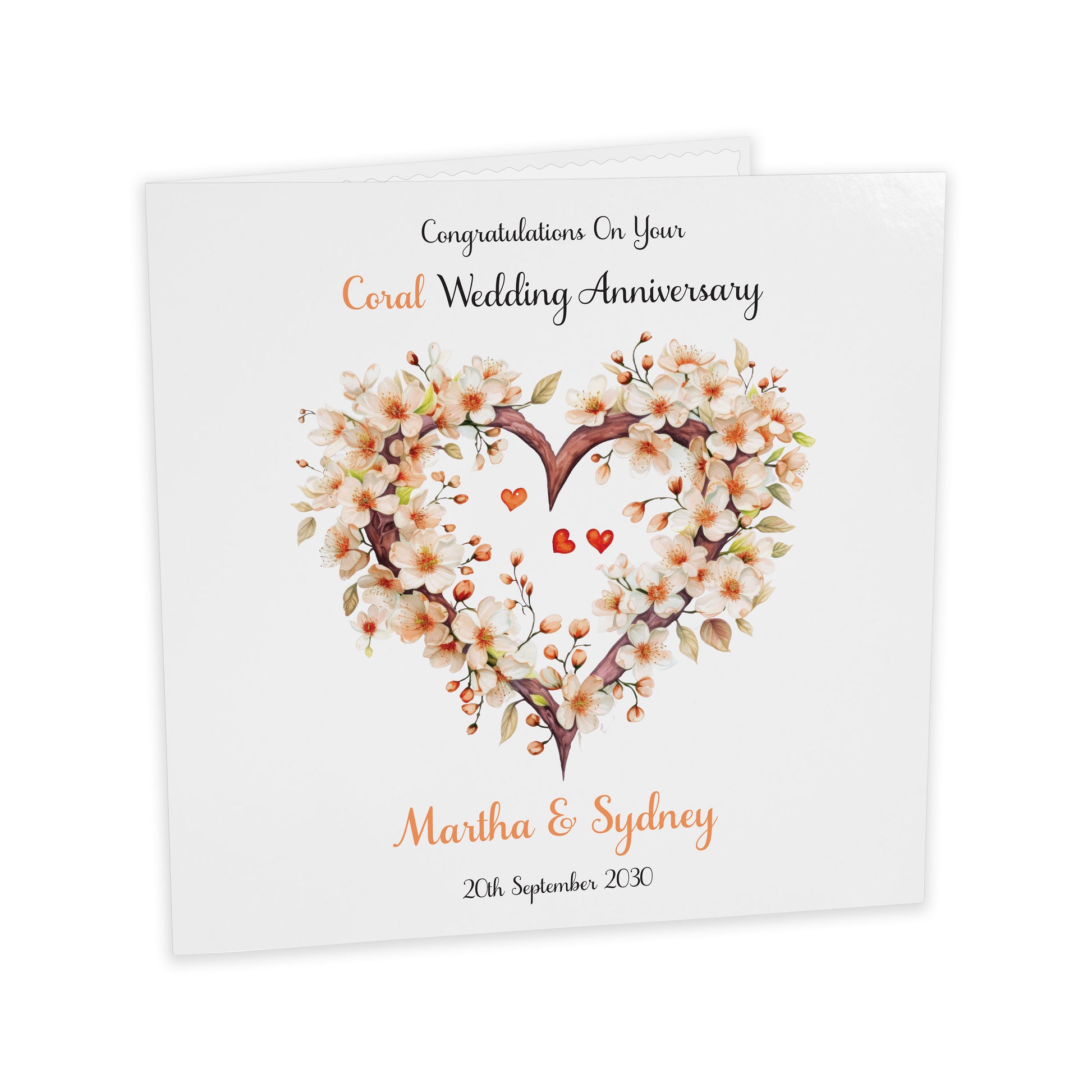 Personalised Anniversary Card (Blossom Heart) - Coral