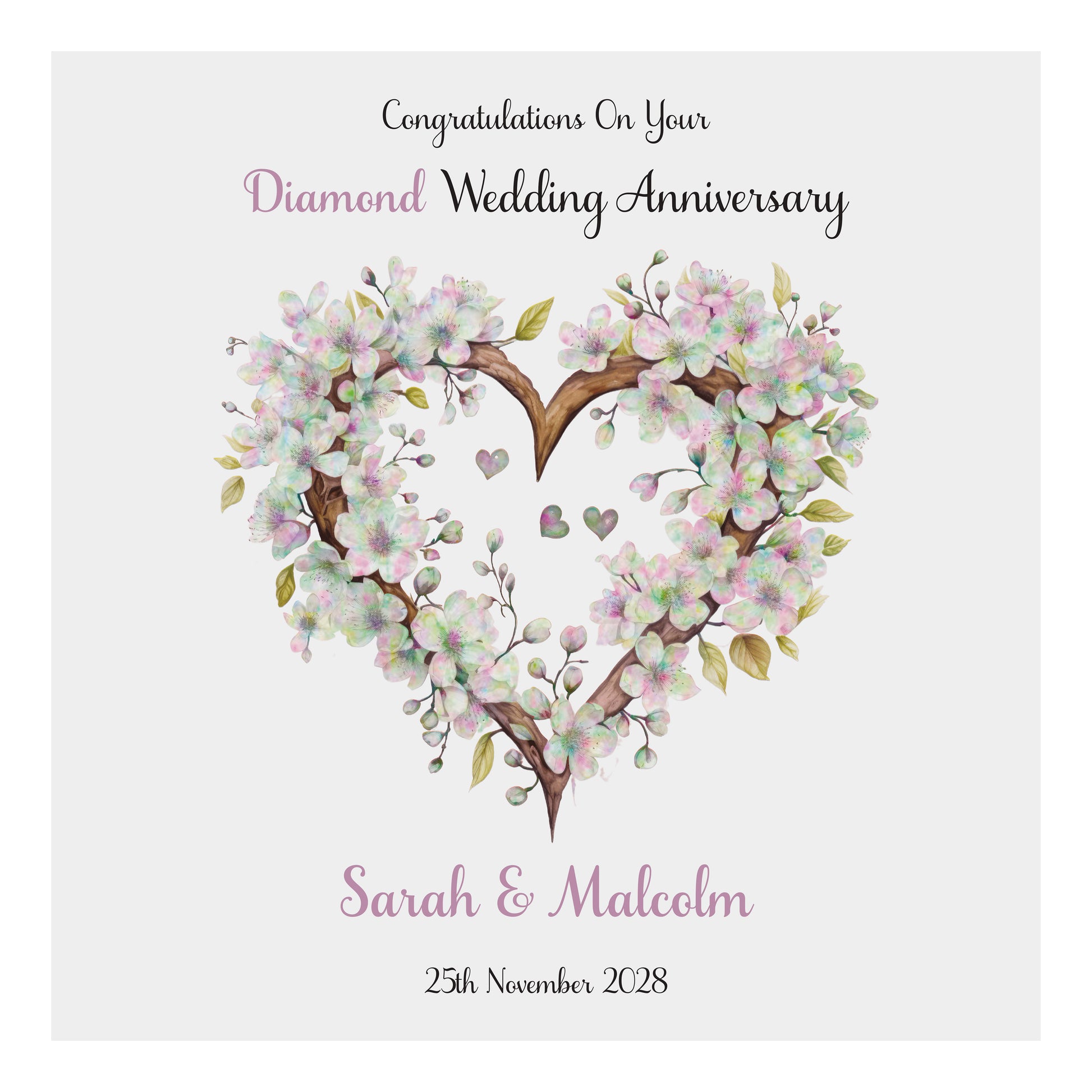Personalised Anniversary Card (Blossom Heart) - Diamond