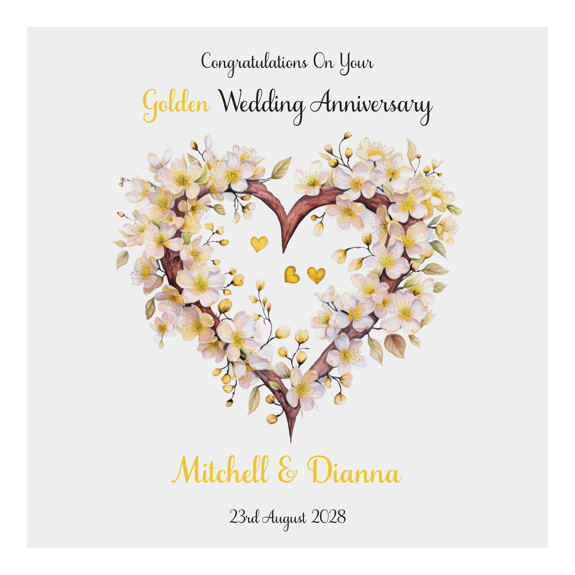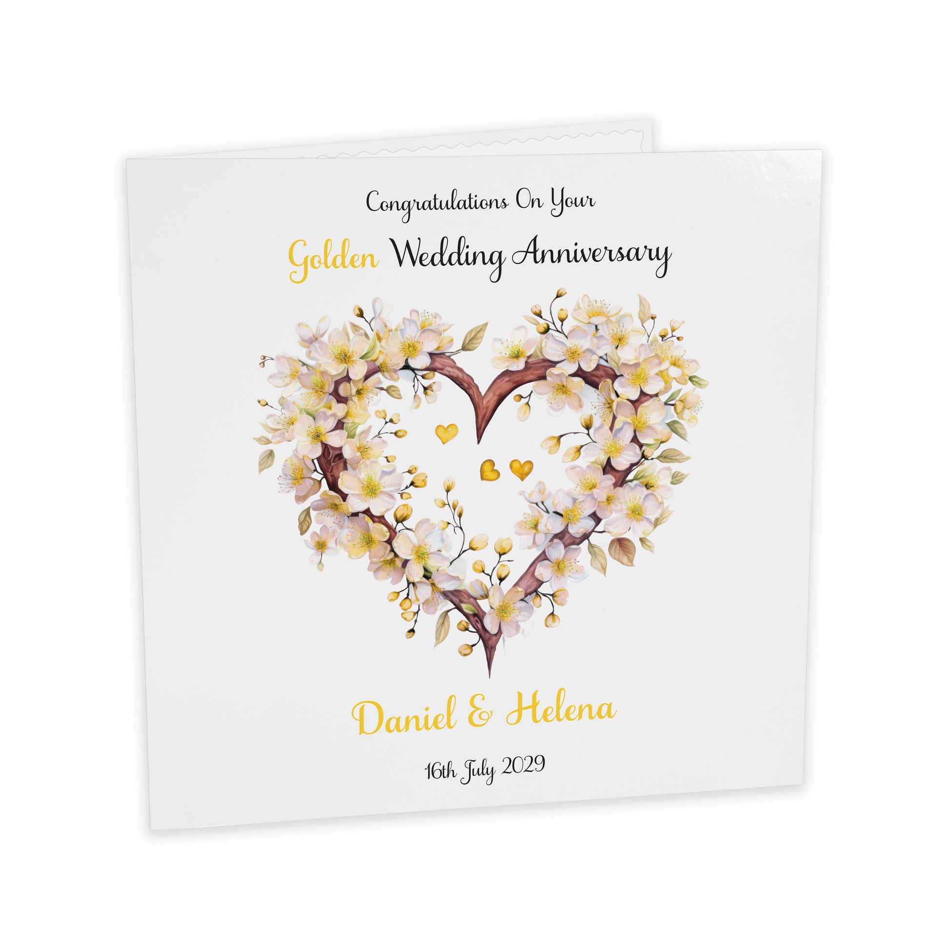 Personalised Anniversary Card (Blossom Heart) - Gold