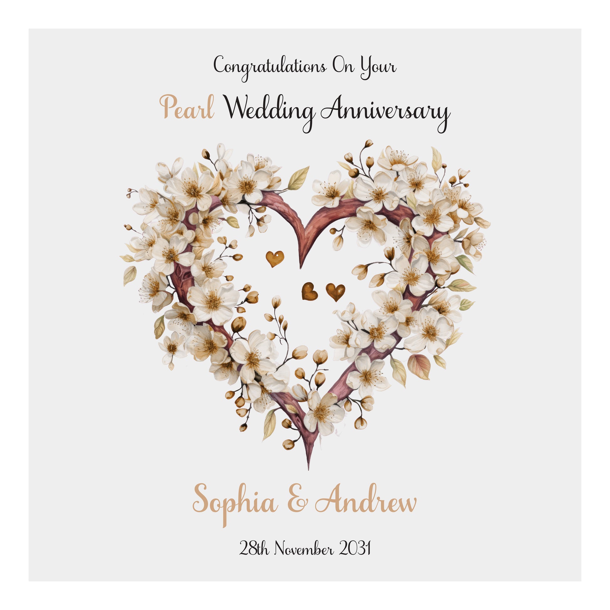 Personalised Anniversary Card (Blossom Heart) - Pearl