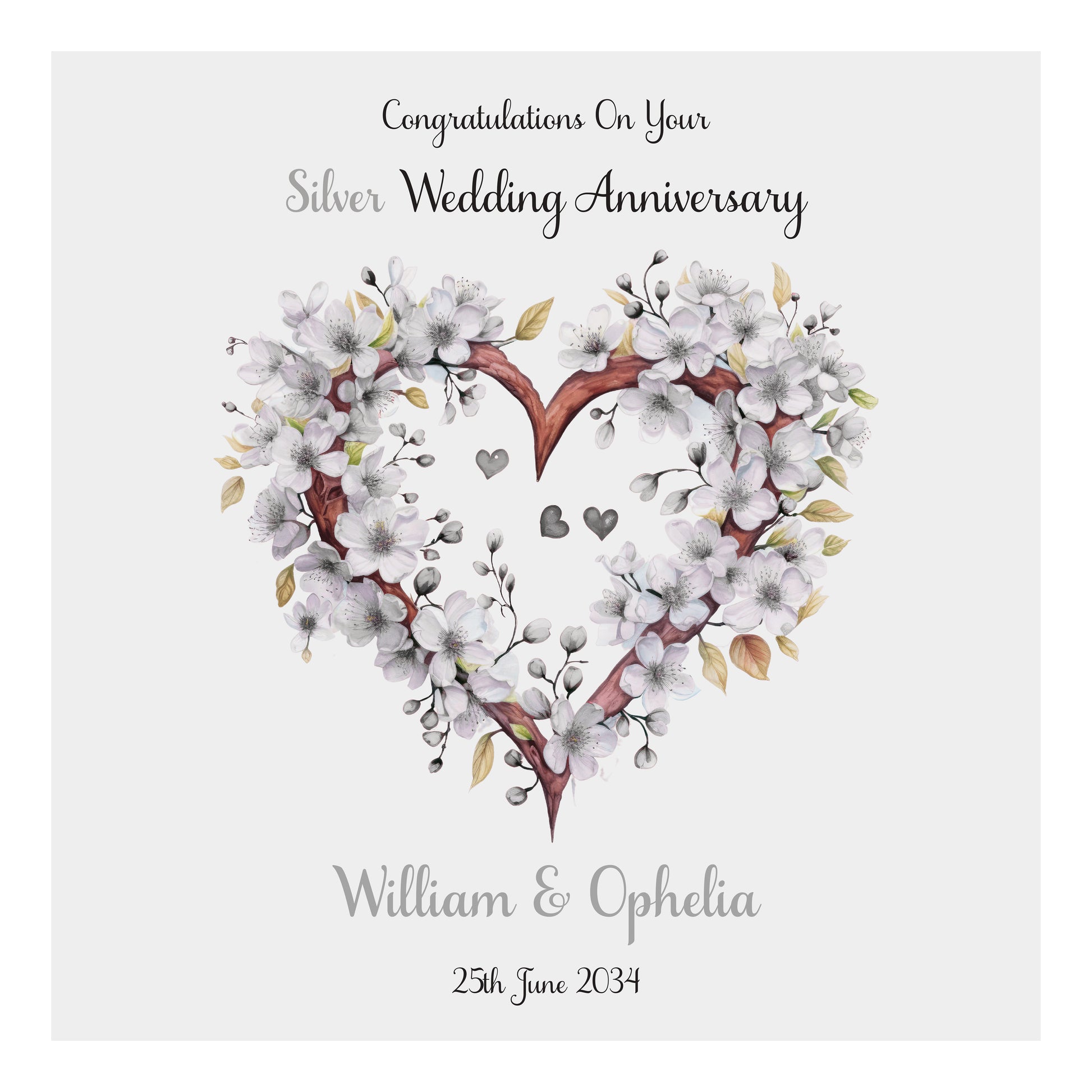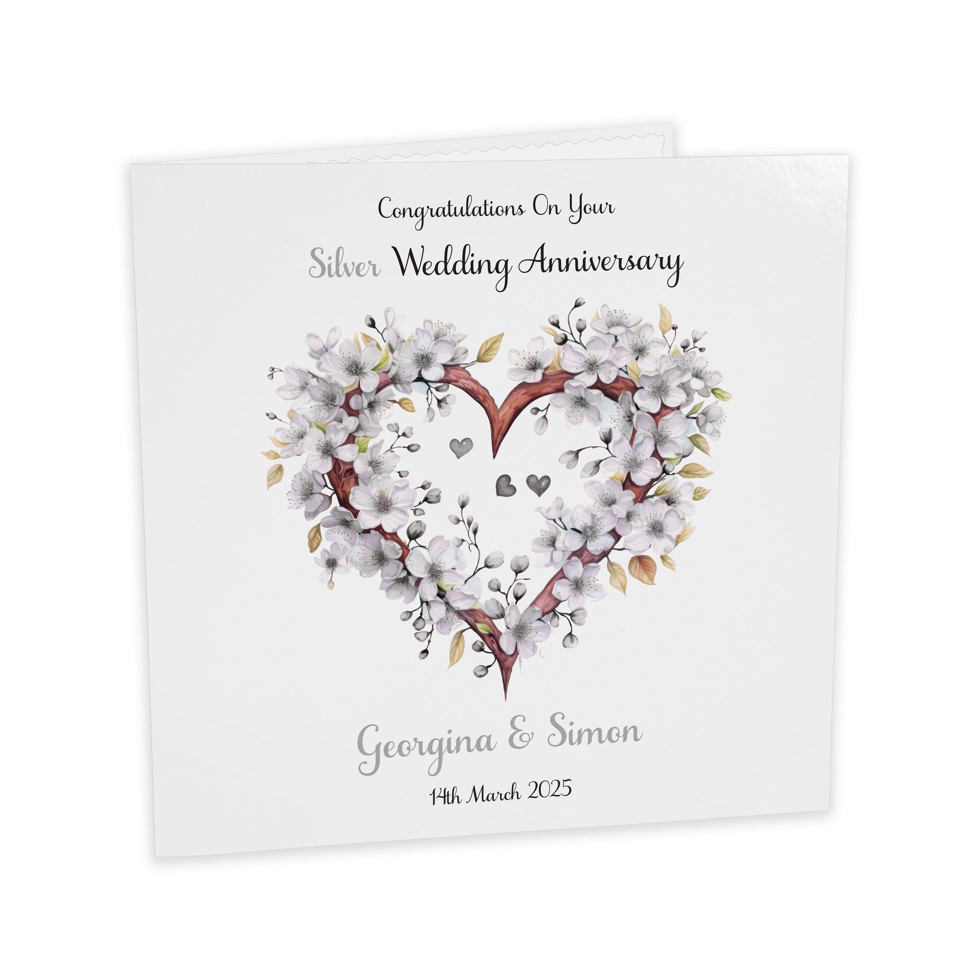 Personalised Anniversary Card (Blossom Heart) - Silver