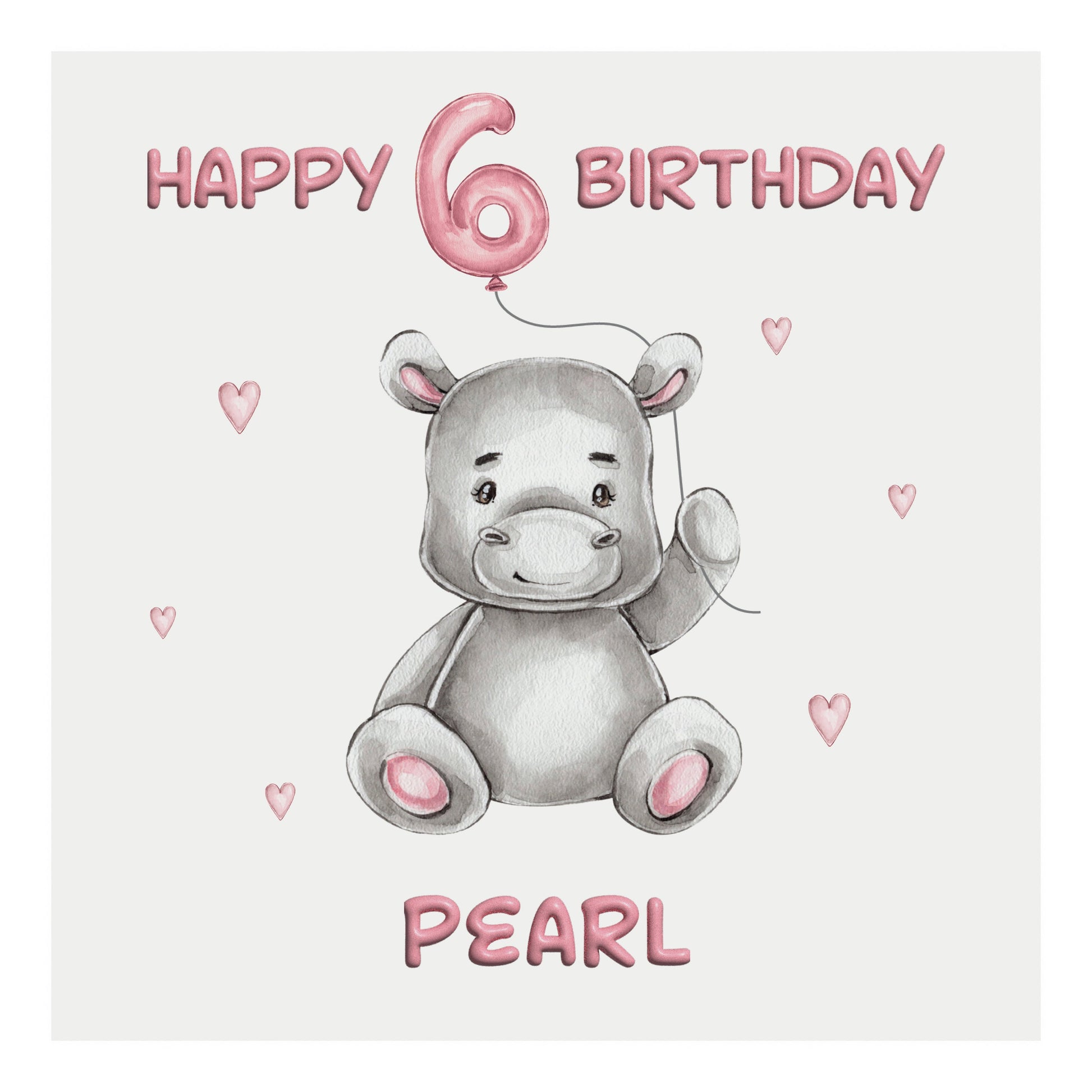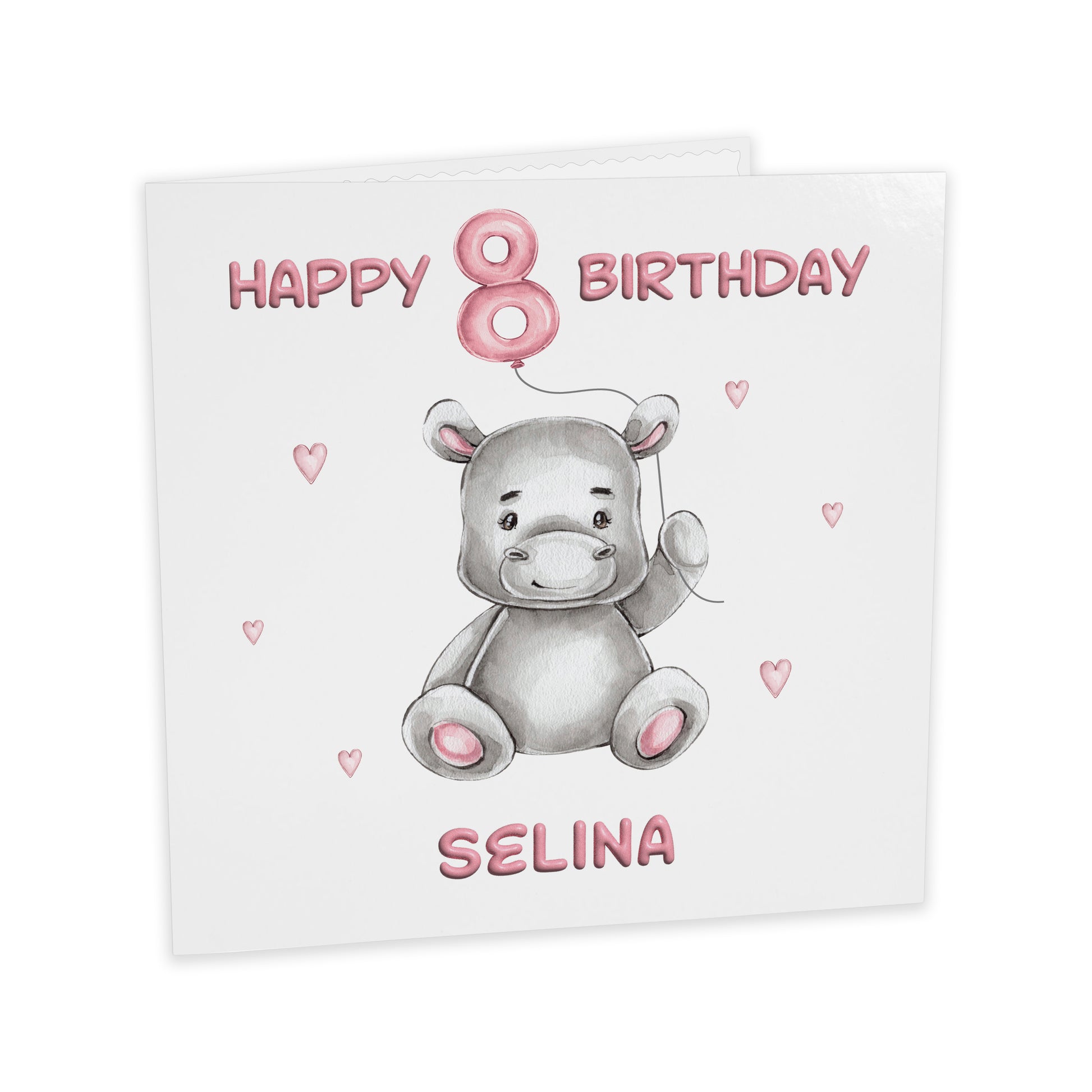 Personalised Birthday Card Balloon Animals (Hippo) - Pink