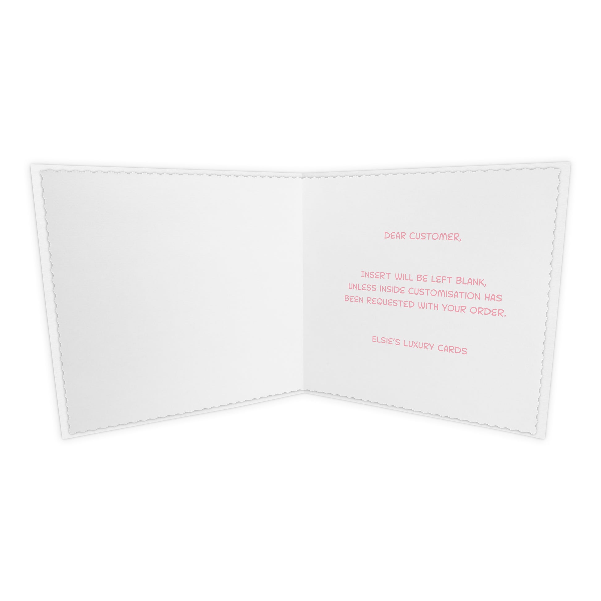 The design features a "Baby Hippo With A Balloon" Design in Pink. Your Personalised Text will be printed on the front design, a White Paper Insert then adds to the premium feel and leaves space for the option of either a Personalised Printed Message Inside or alternatively leave it Blank for a sentimental handwritten message.