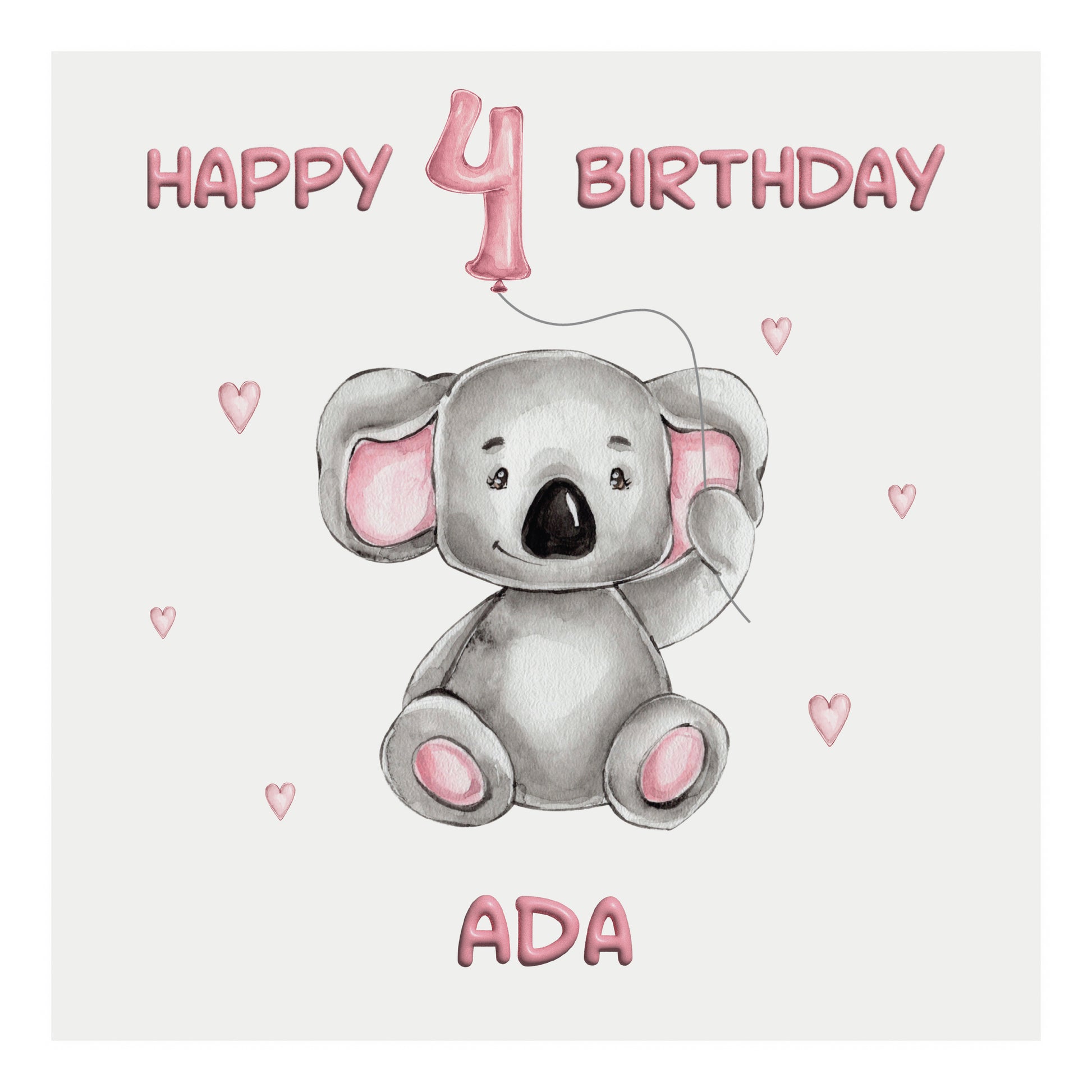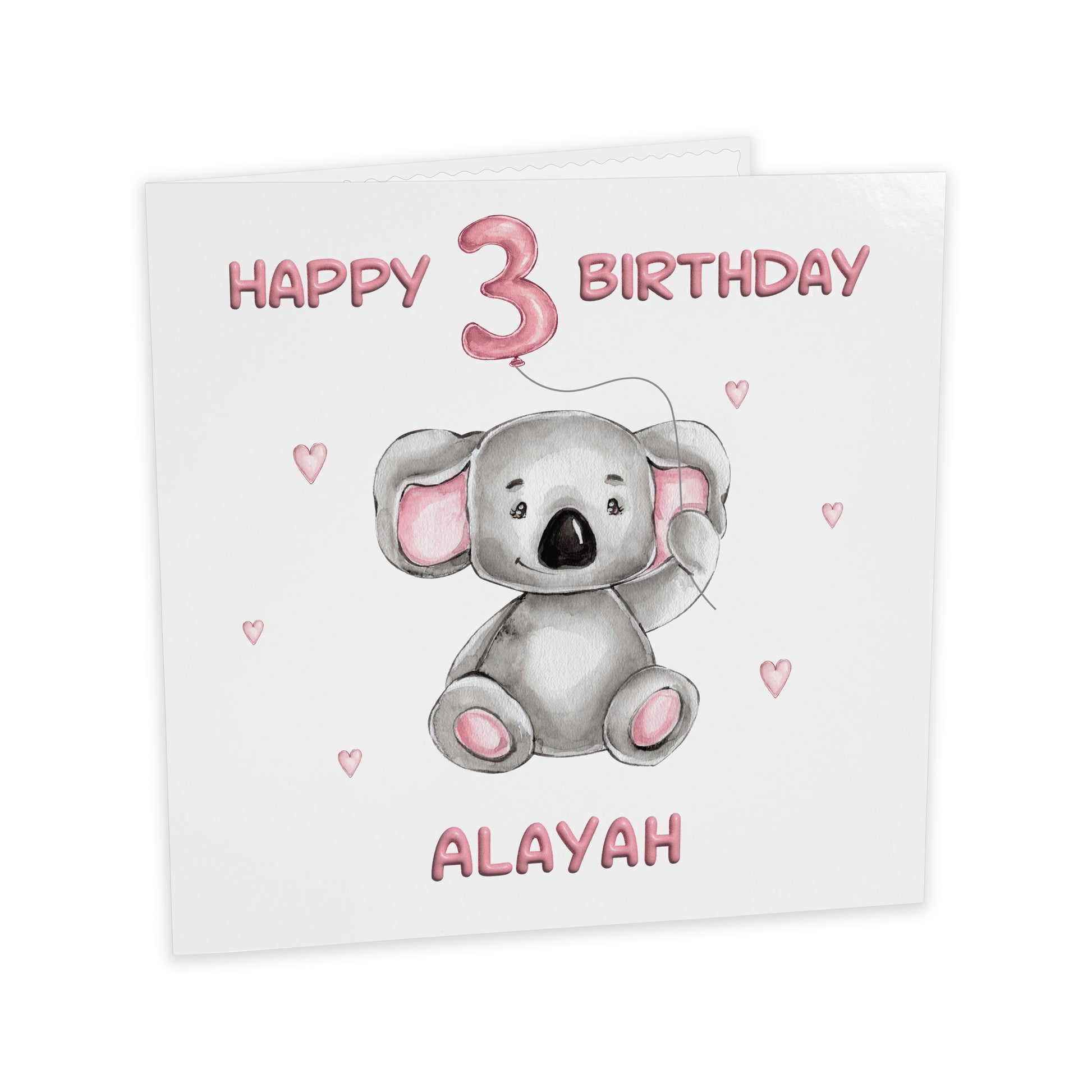 Personalised Birthday Card Balloon Animals (Koala) - Pink