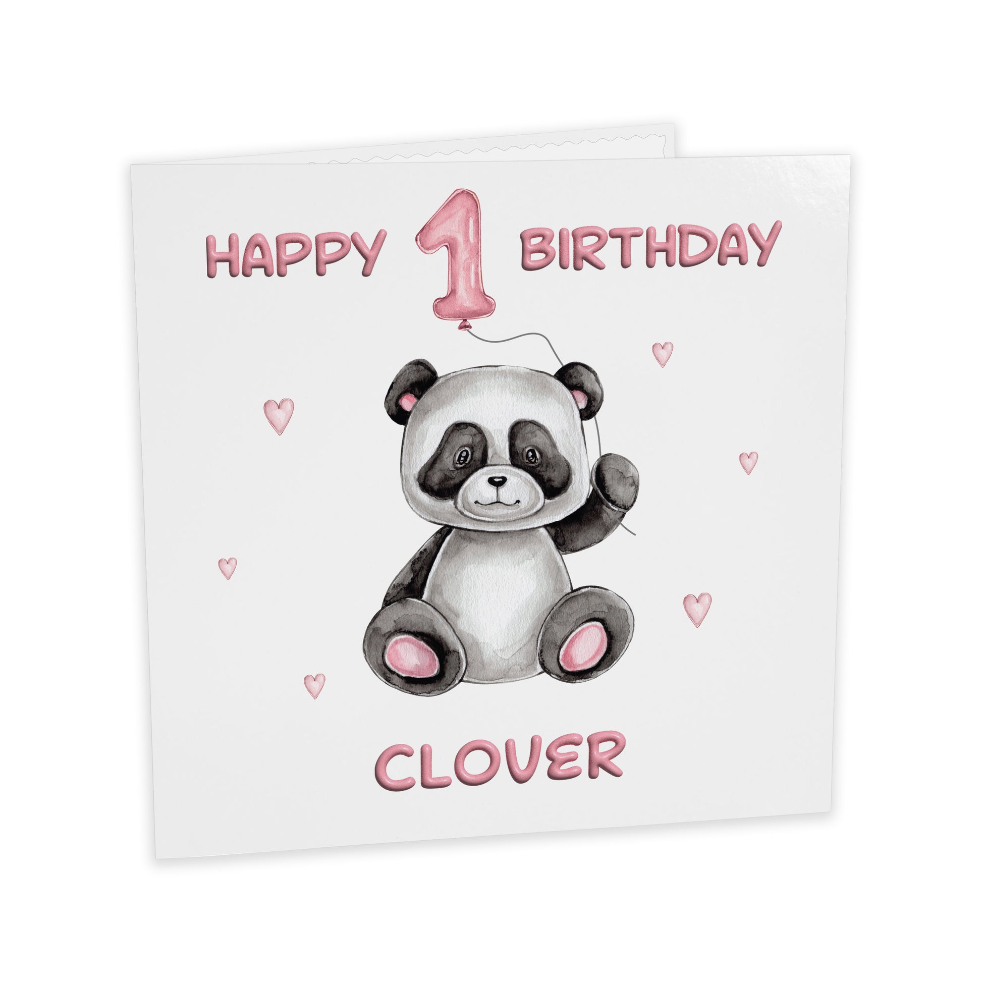 The design features a "Baby Panda With A Balloon" Design in Pink. Your Personalised Text will be printed on the front design, a White Paper Insert then adds to the premium feel and leaves space for the option of either a Personalised Printed Message Inside or alternatively leave it Blank for a sentimental handwritten message.