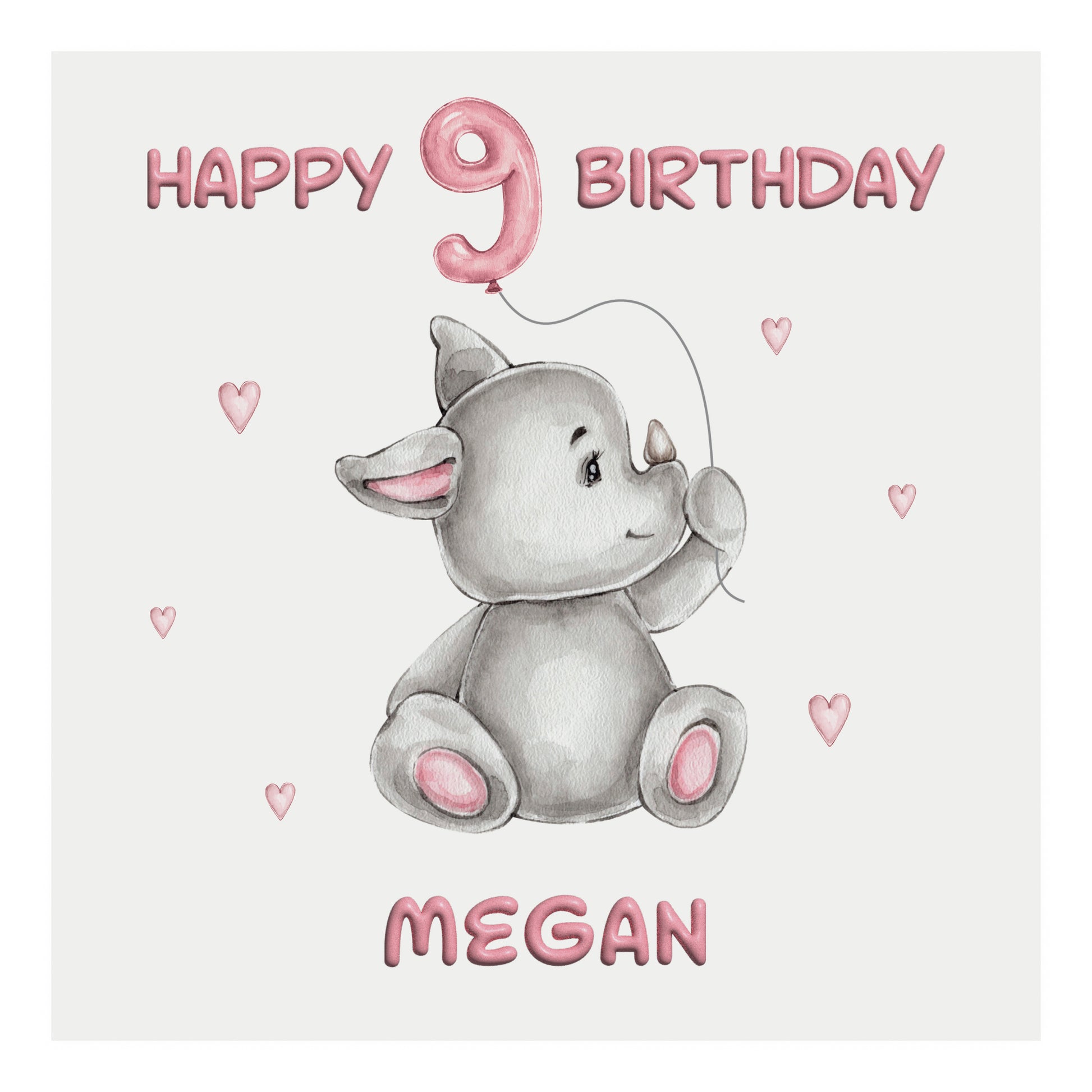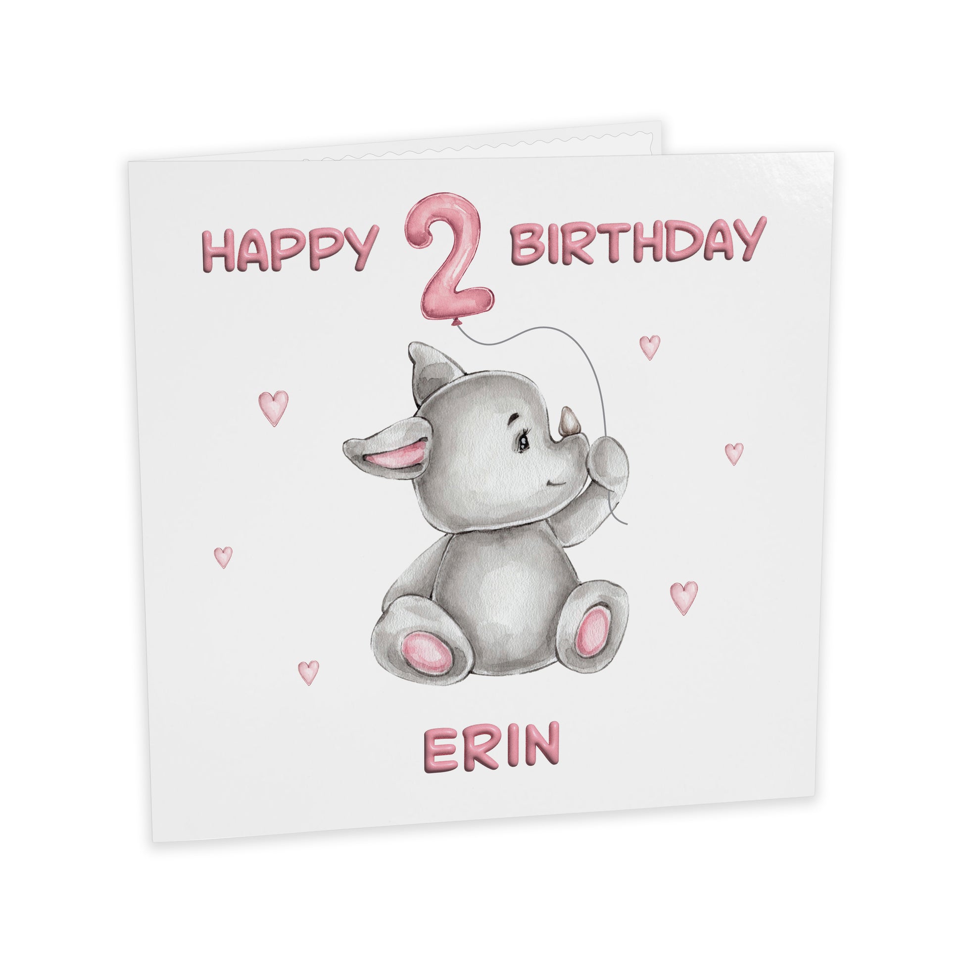 Personalised Birthday Card Balloon Animals (Rhino) - Pink