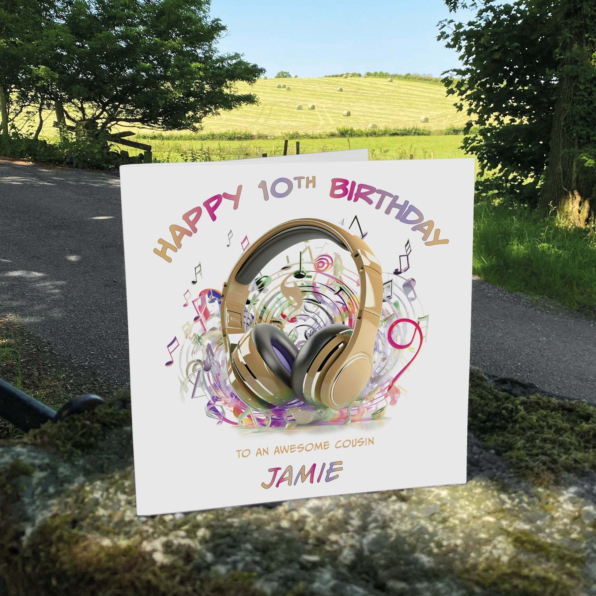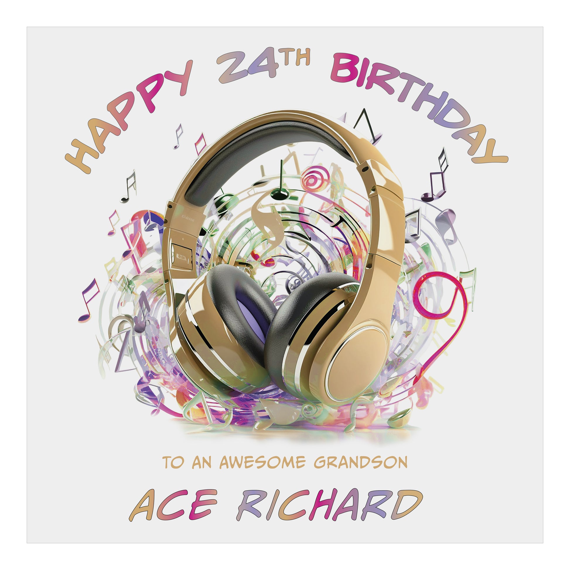 The design features a "Headphones" Design in carefully chosen colours. Your Personalised Text will be printed on the front design, a White Paper Insert then adds to the premium feel and leaves space for the option of either a Personalised Printed Message Inside or alternatively leave it Blank for a sentimental handwritten message.