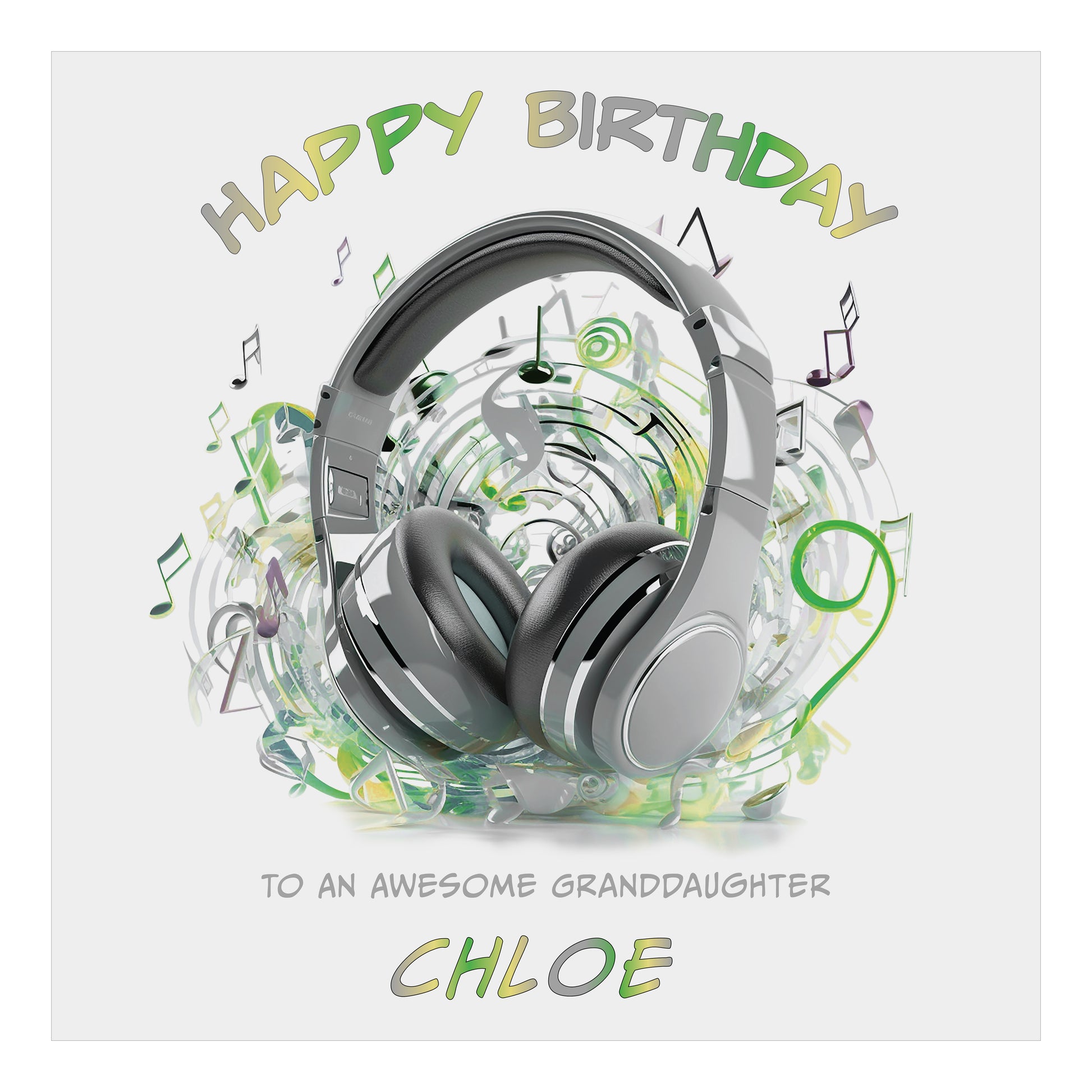The design features a "Headphones" Design in carefully chosen colours. Your Personalised Text will be printed on the front design, a White Paper Insert then adds to the premium feel and leaves space for the option of either a Personalised Printed Message Inside or alternatively leave it Blank for a sentimental handwritten message.