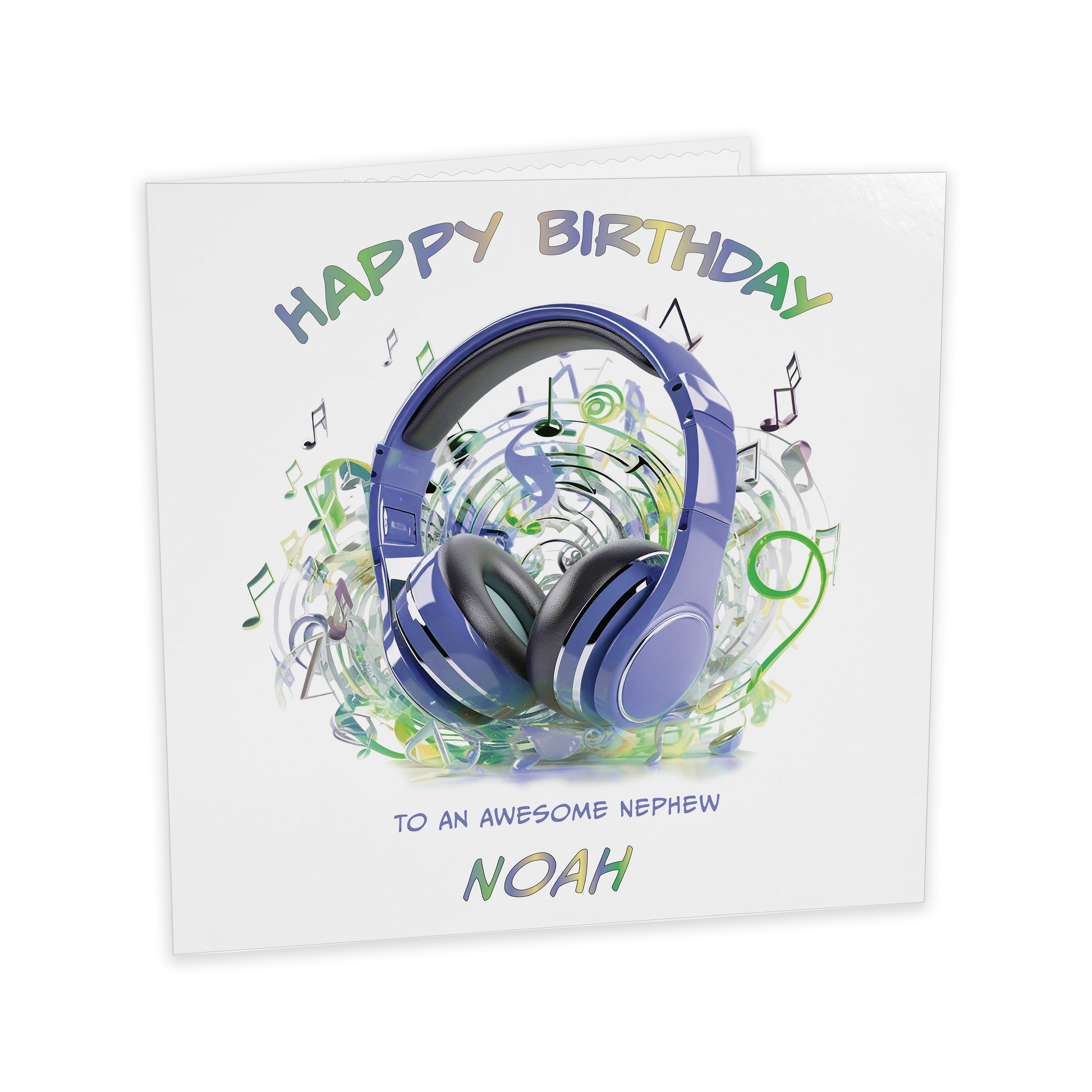 The design features a "Headphones" Design in carefully chosen colours. Your Personalised Text will be printed on the front design, a White Paper Insert then adds to the premium feel and leaves space for the option of either a Personalised Printed Message Inside or alternatively leave it Blank for a sentimental handwritten message.