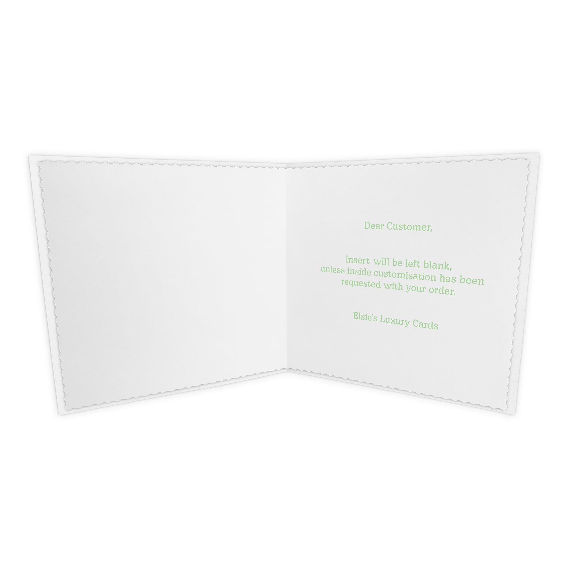 The design features a "Peeping Bunny" Design in carefully chosen colours. Your Personalised Text will be printed on the front design, a White Paper Insert then adds to the premium feel and leaves space for the option of either a Personalised Printed Message Inside or alternatively leave it Blank for a sentimental handwritten message.