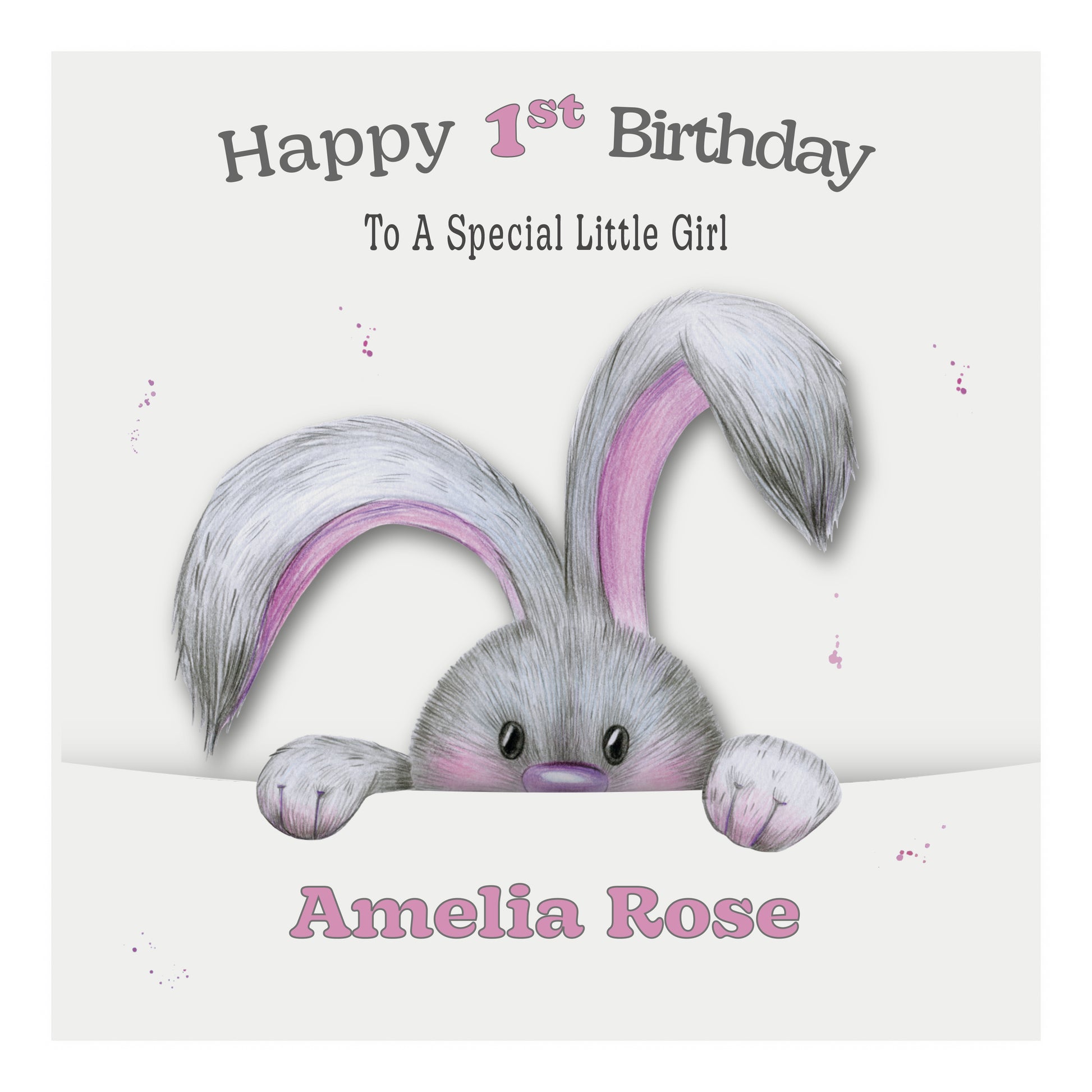 Personalised Birthday Card (Peeping Bunny) - Pink