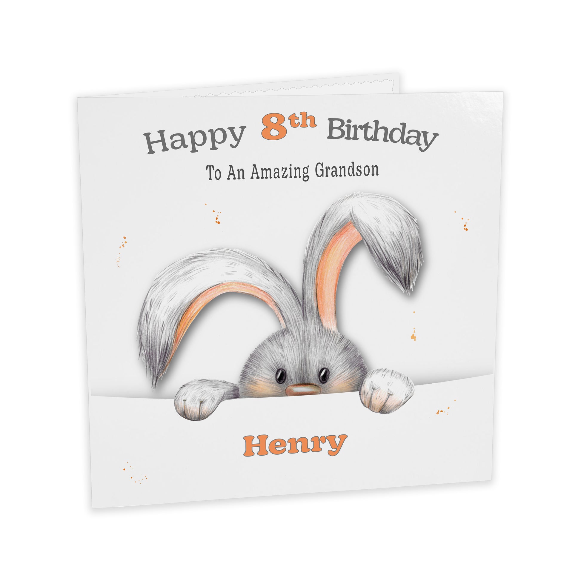 Personalised Birthday Card (Peeping Bunny) - Orange