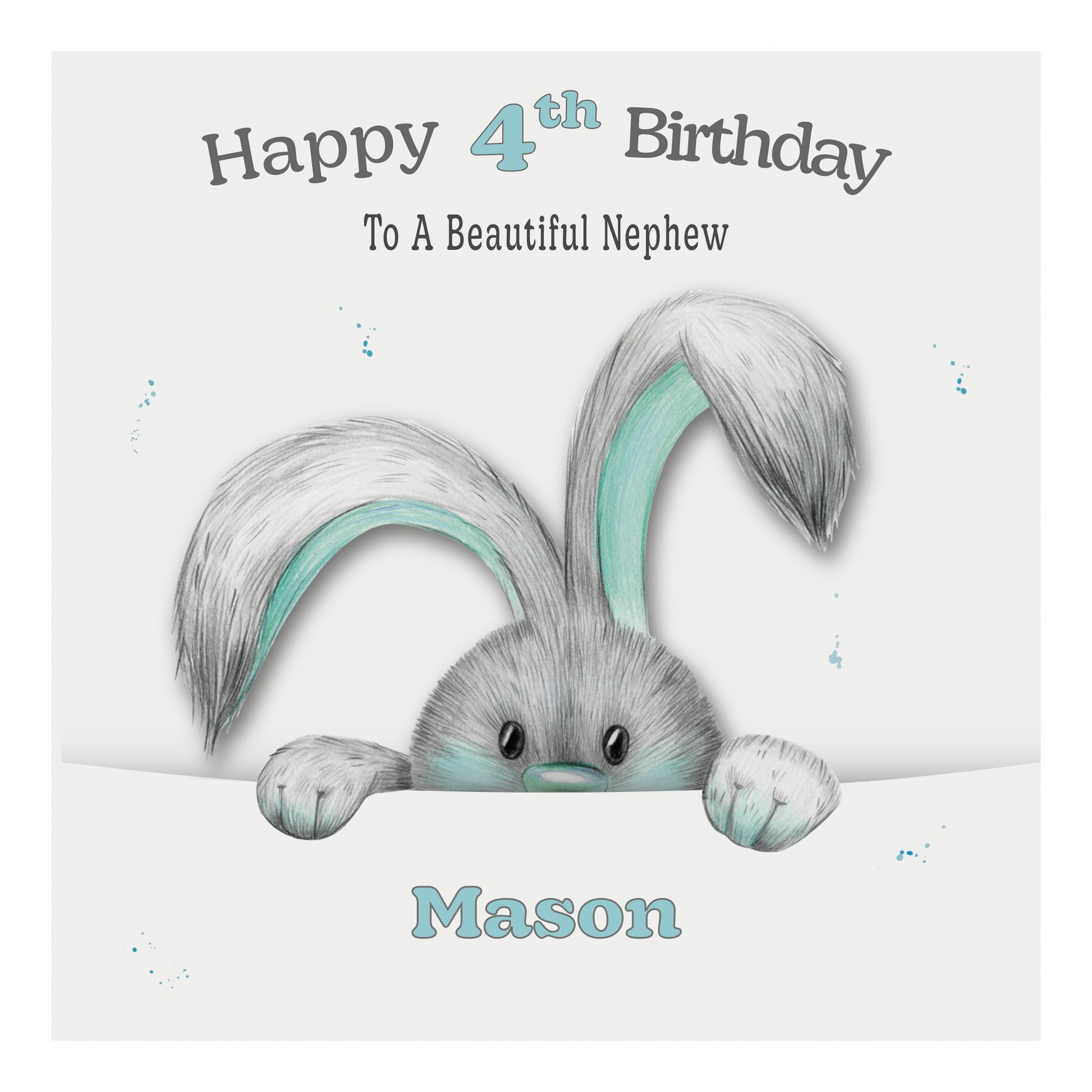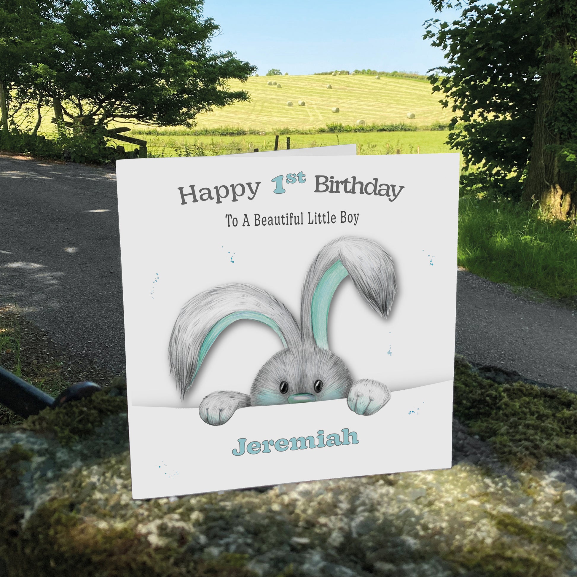 Personalised Birthday Card (Peeping Bunny) - Turquoise