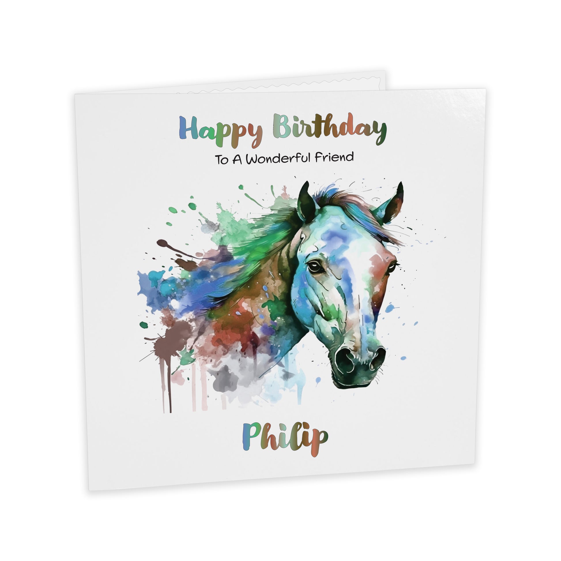 Personalised Birthday Card (Watercolour Horse) - Chocolate Charm
