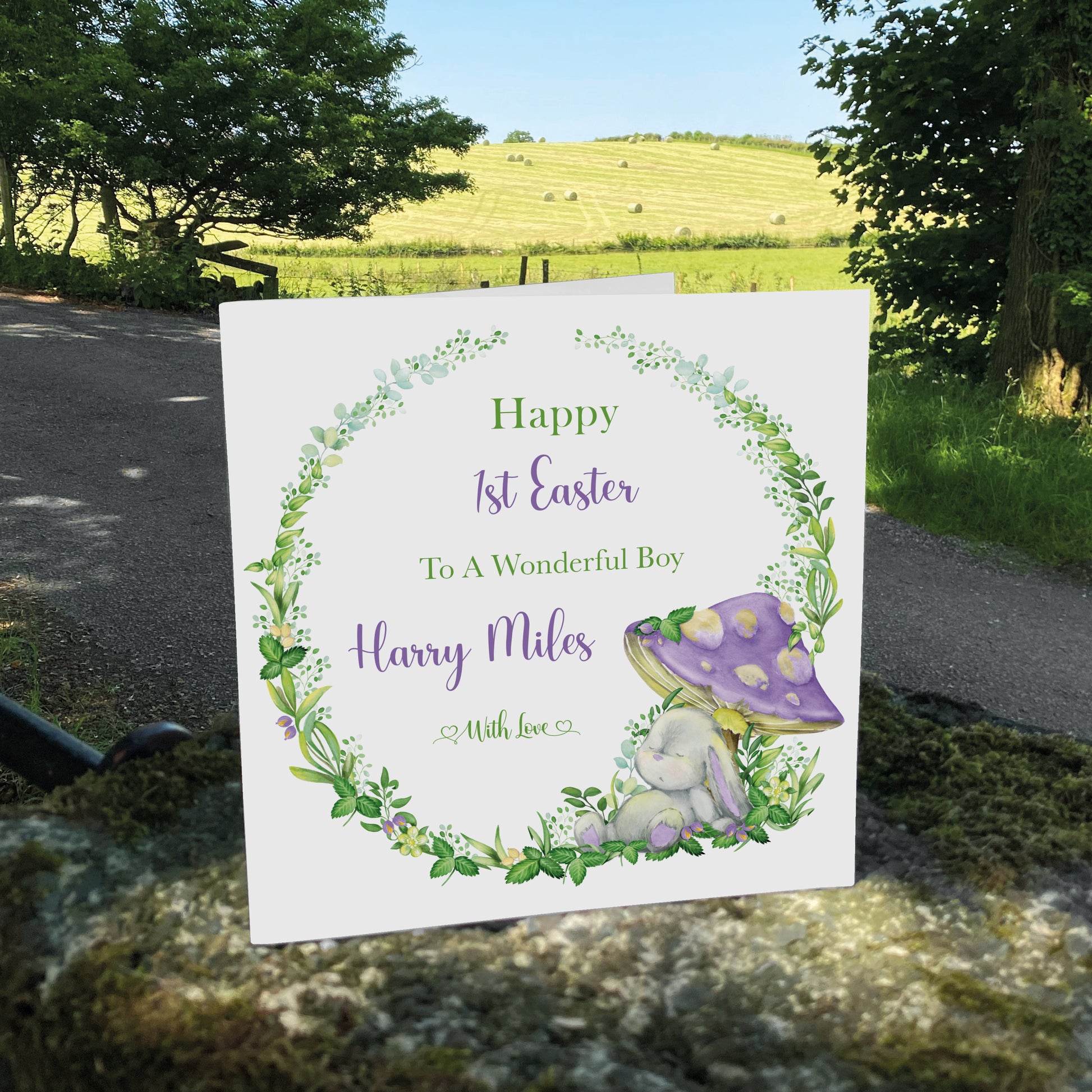 Personalised Easter Card (Mushroom Bunny)