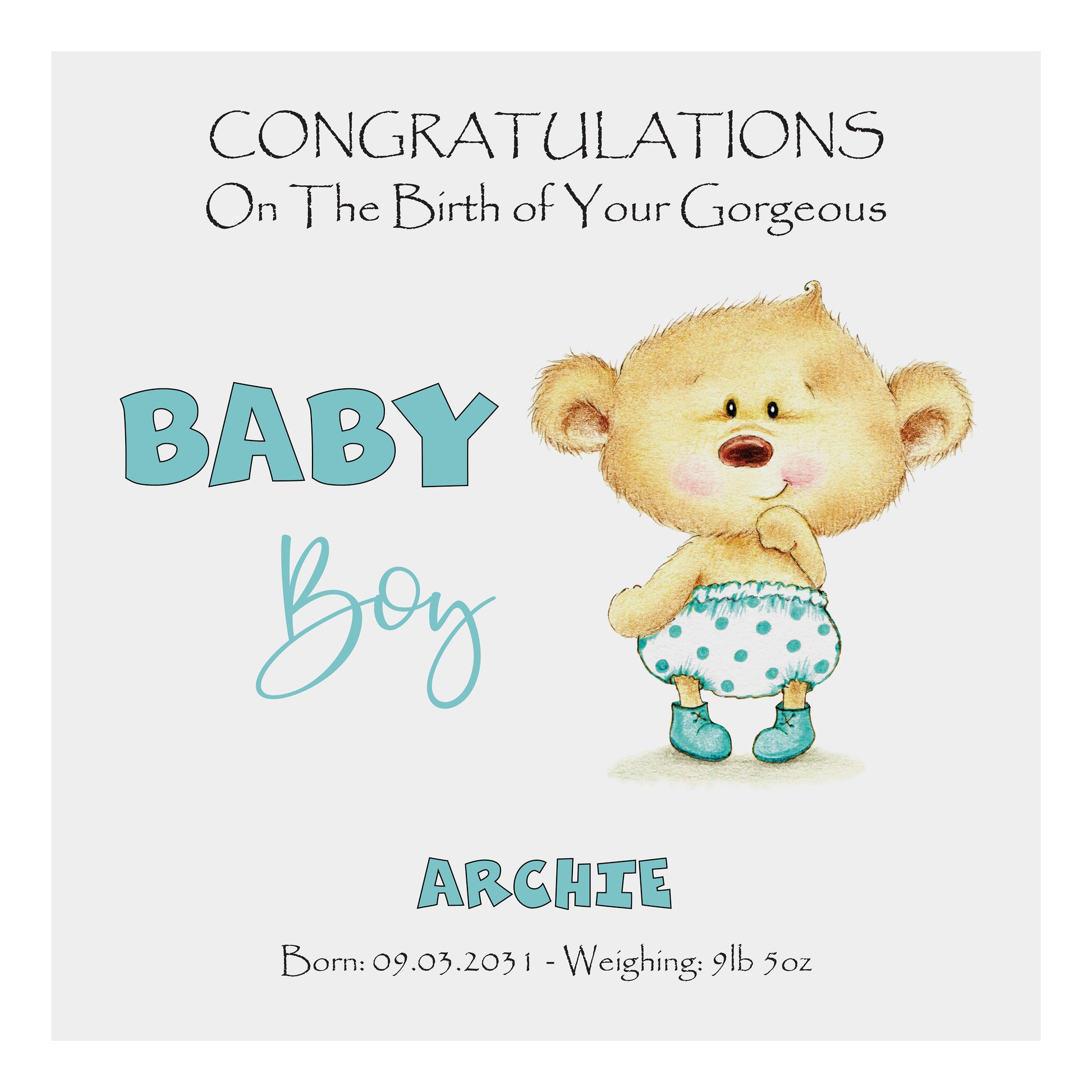 Personalised New Baby Card (Baby Bear) - Turquoise