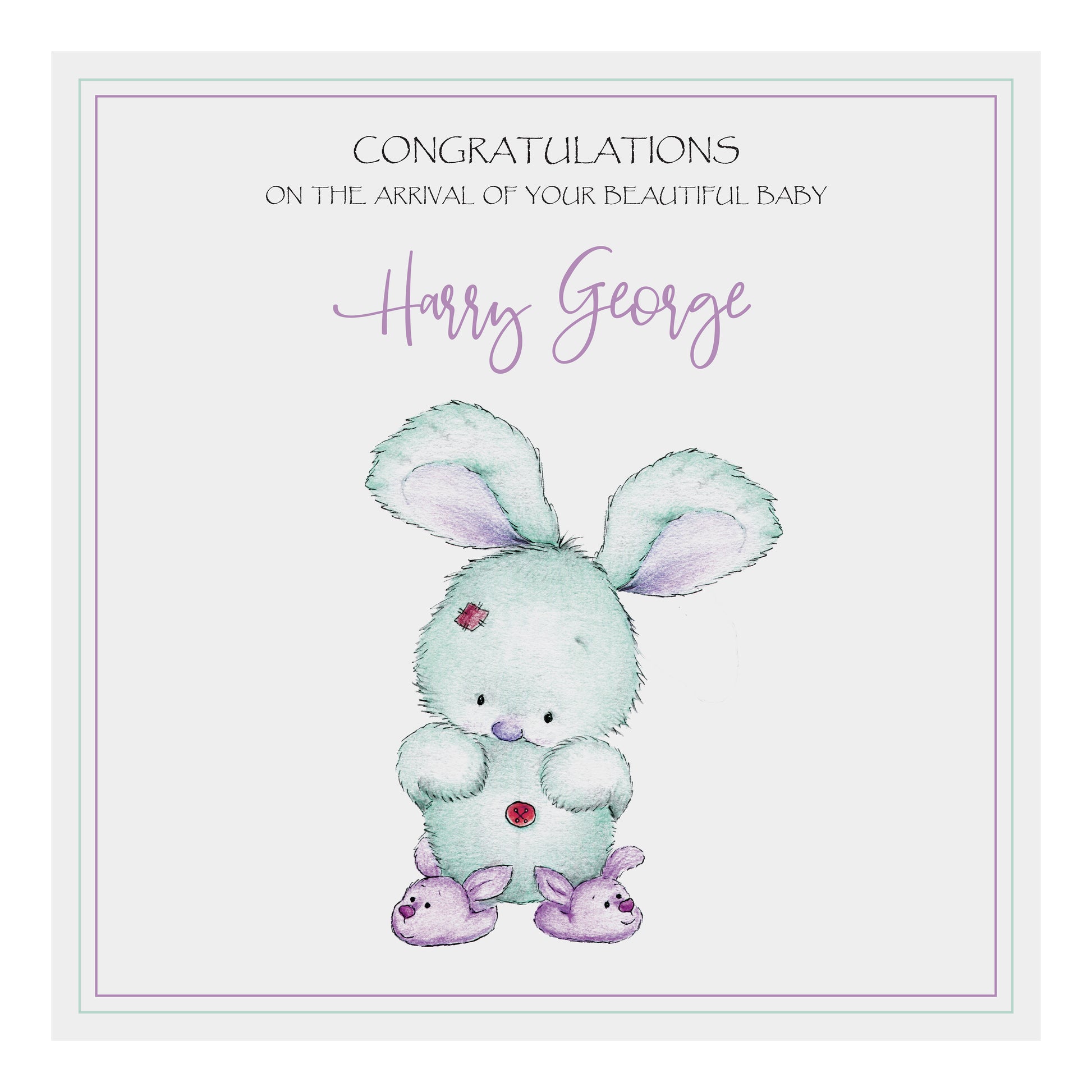 Personalised New Baby Card (Bunny Slippers) - Turquoise & Purple