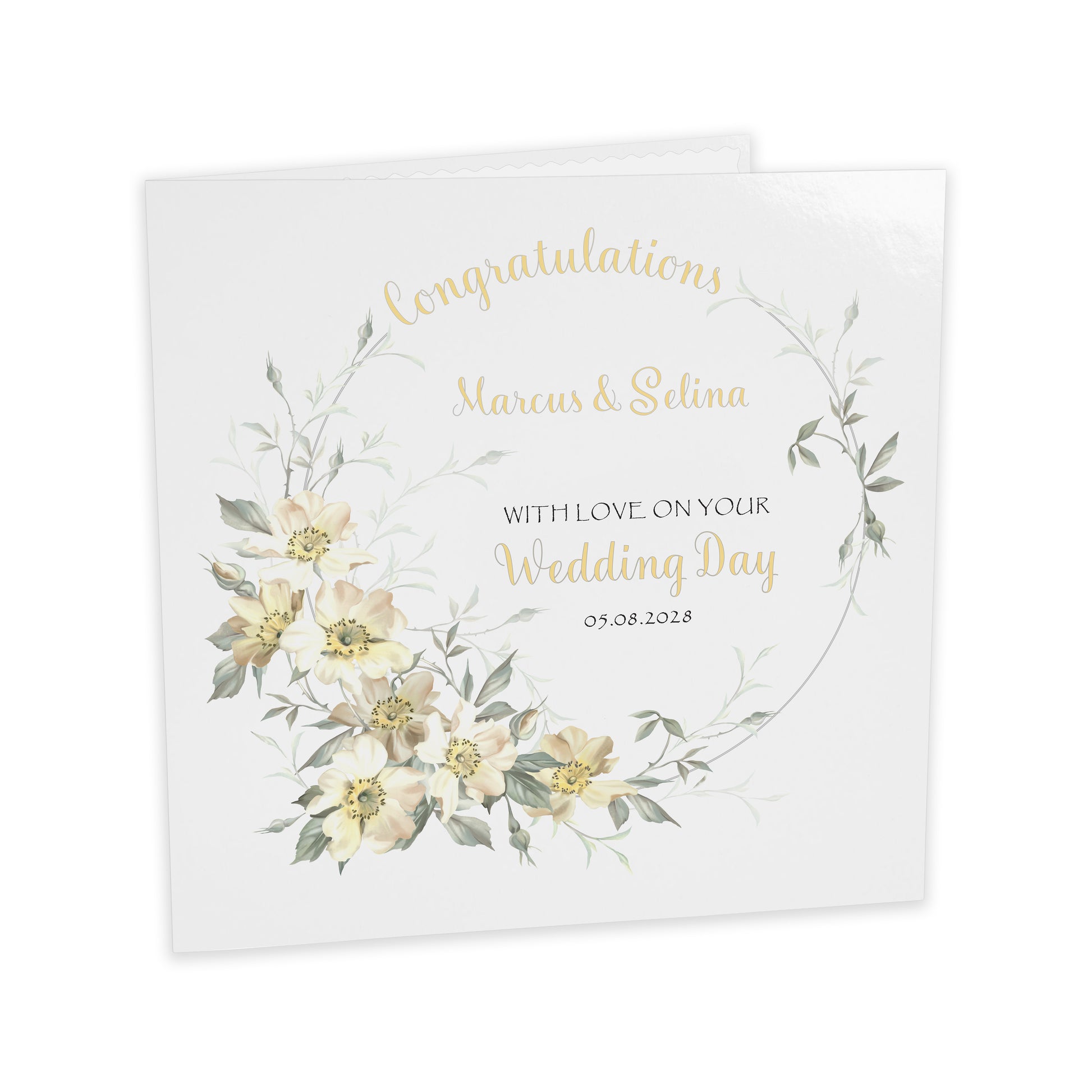 Personalised Wedding Card (Flowers) - Cream