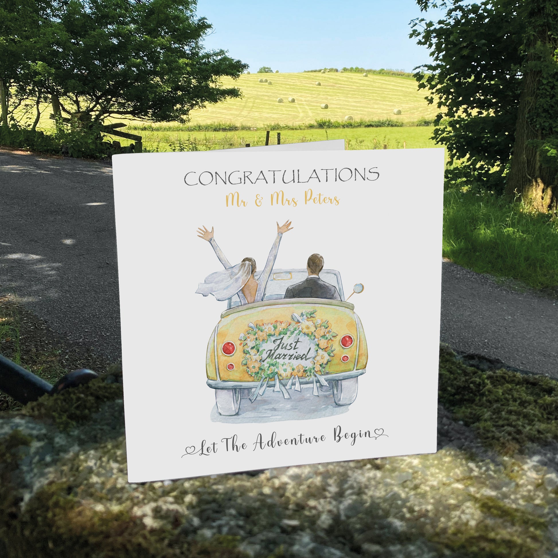 Personalised Wedding Card (Just Married, Car) - Lemon