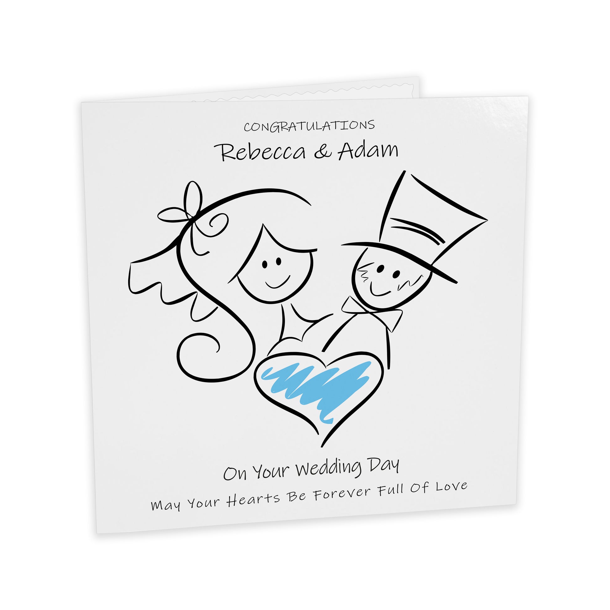 Personalised Wedding Card (Love Heart Couple) - Sky Blue