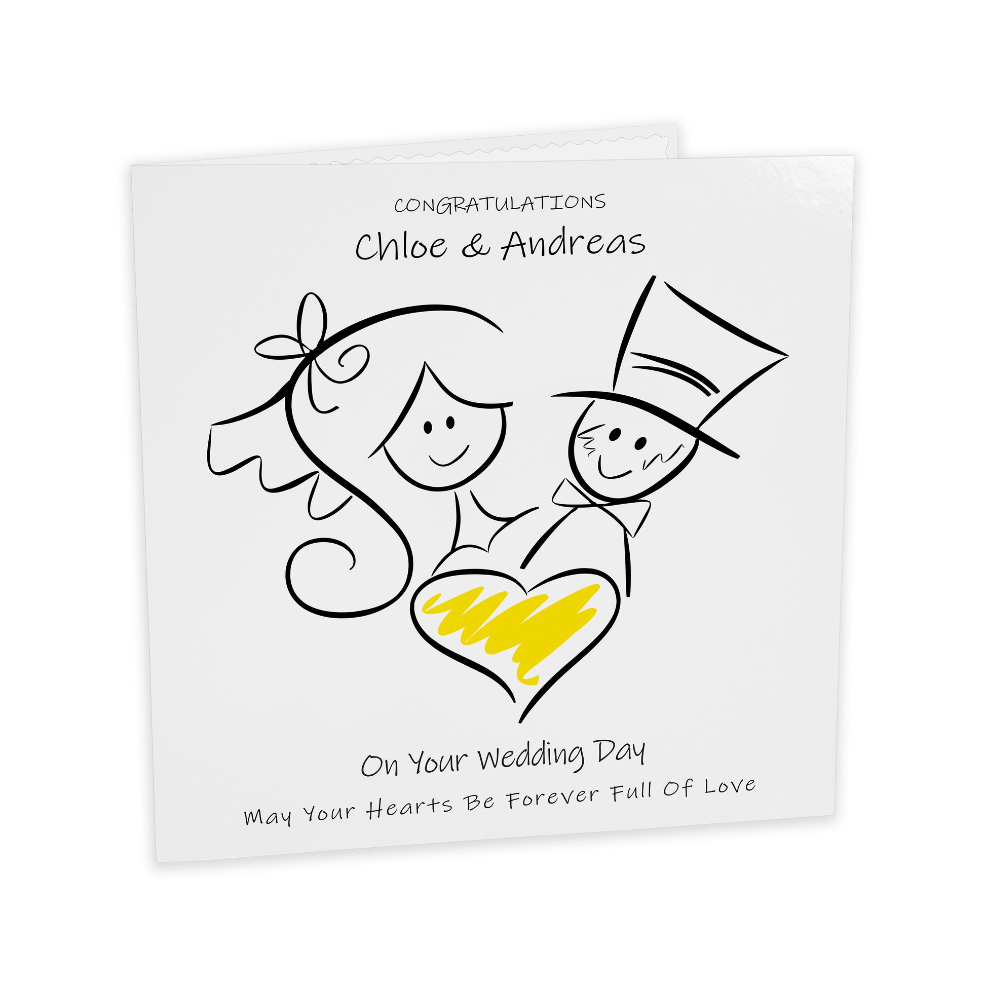 Personalised Wedding Card (Love Heart Couple) - Yellow