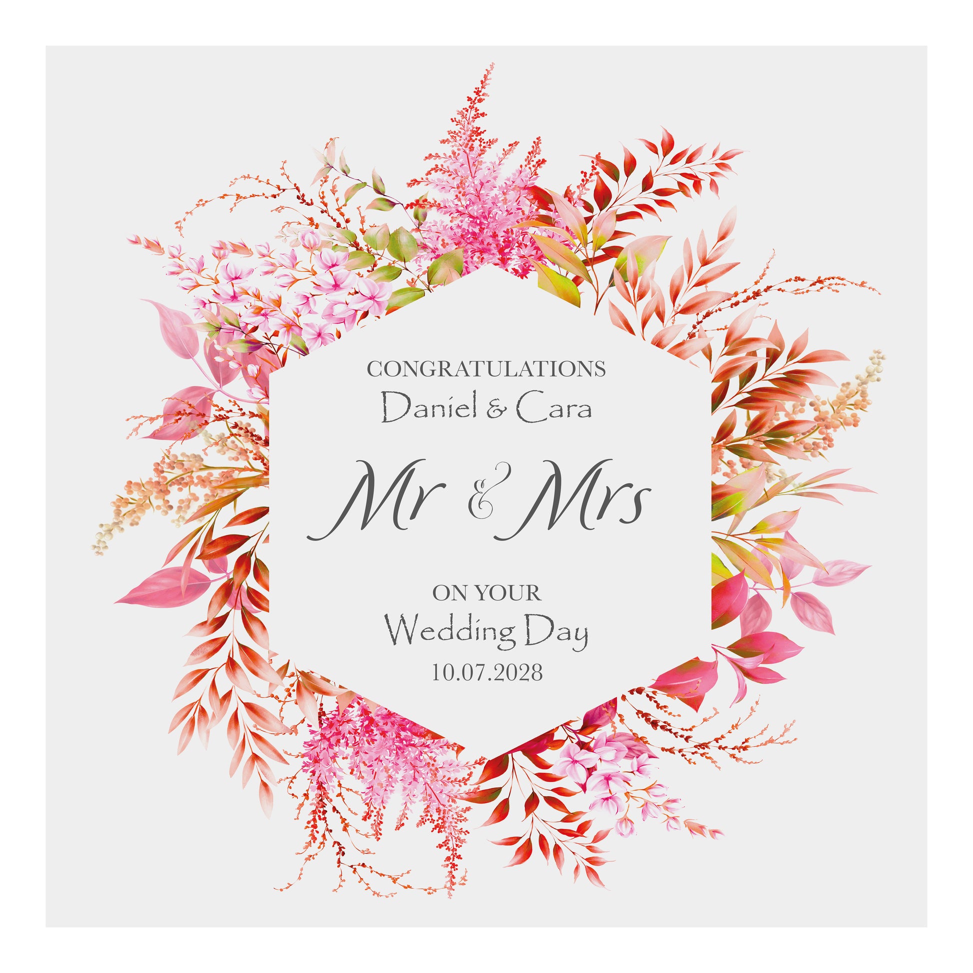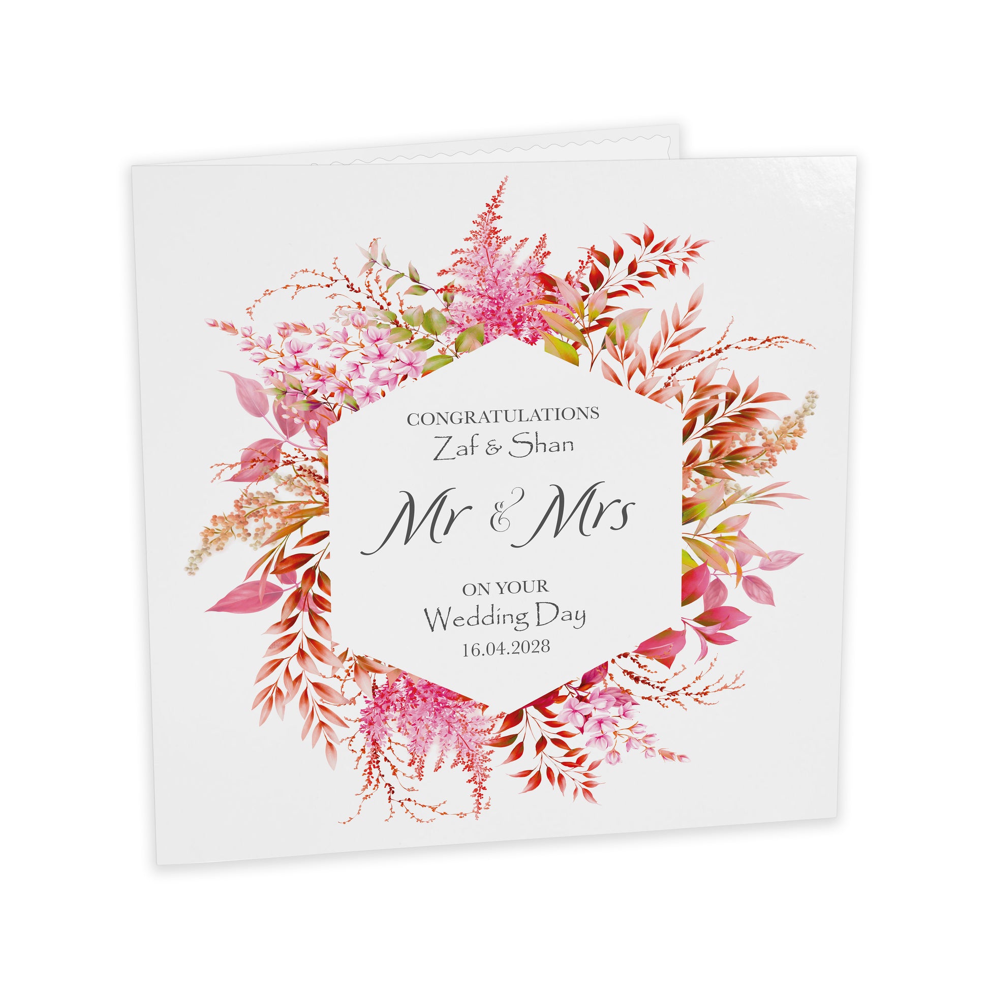 Personalised Wedding Card (Mr & Mrs Wreath) - Bright Pink