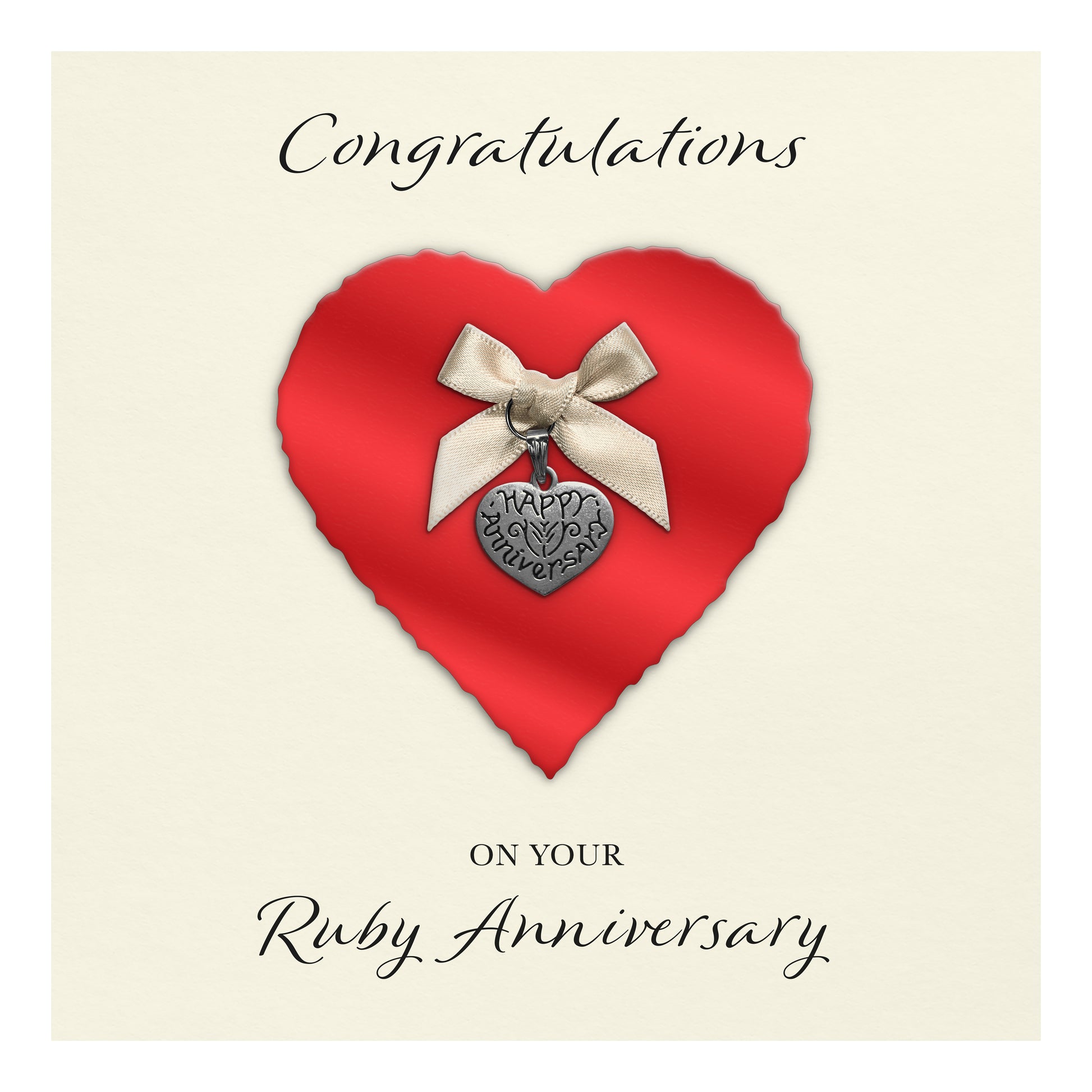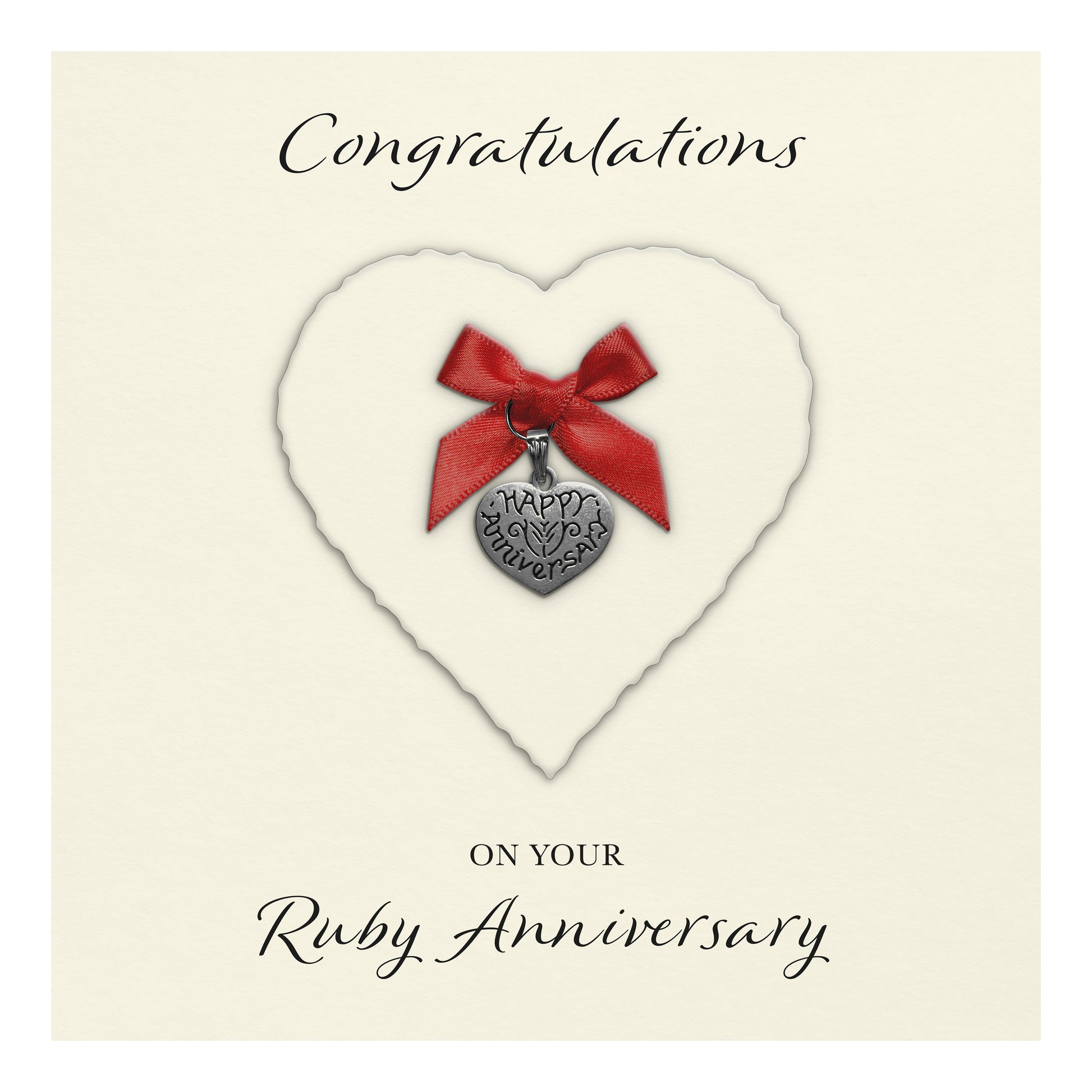 Ruby 40th Anniversary Card (Heart Charm & Bow) - Ivory Cardstock
