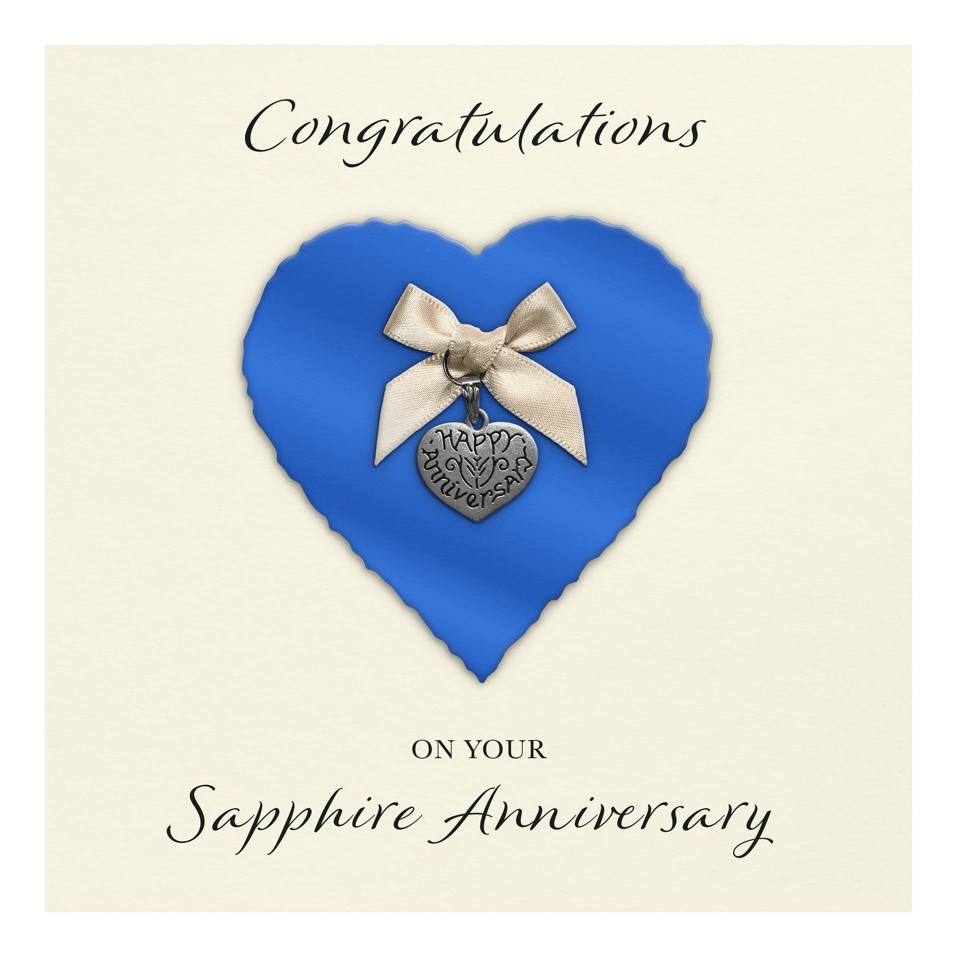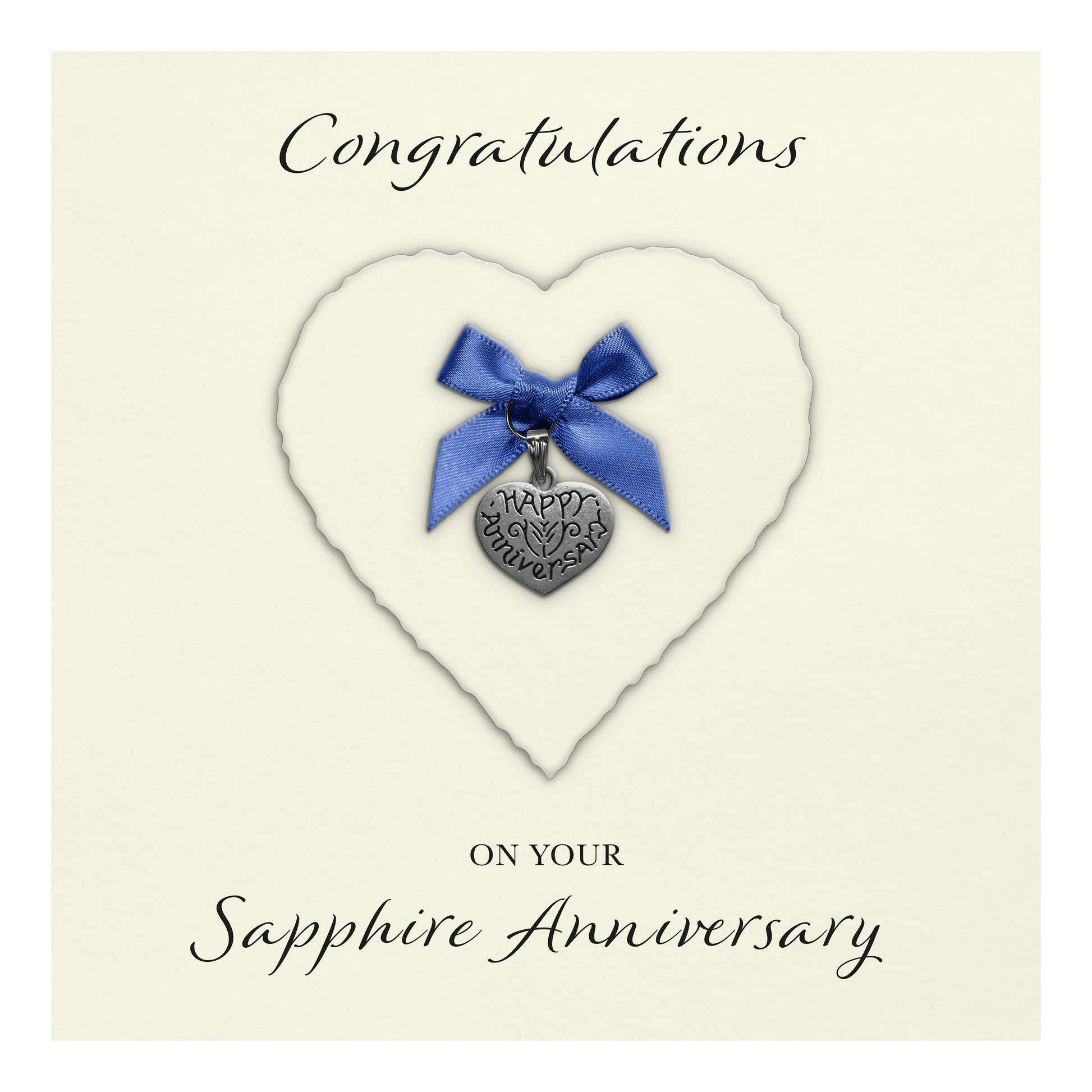 Sapphire 45th Anniversary Card (Heart Charm & Bow) - Ivory Cardstock