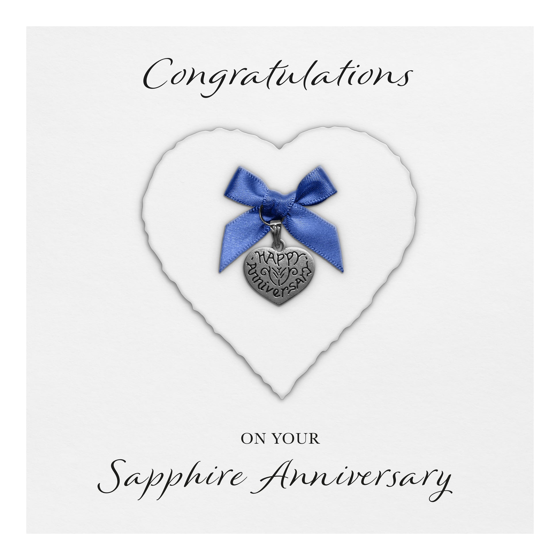 Sapphire 45th Anniversary Card (Heart Charm & Bow) - White Cardstock