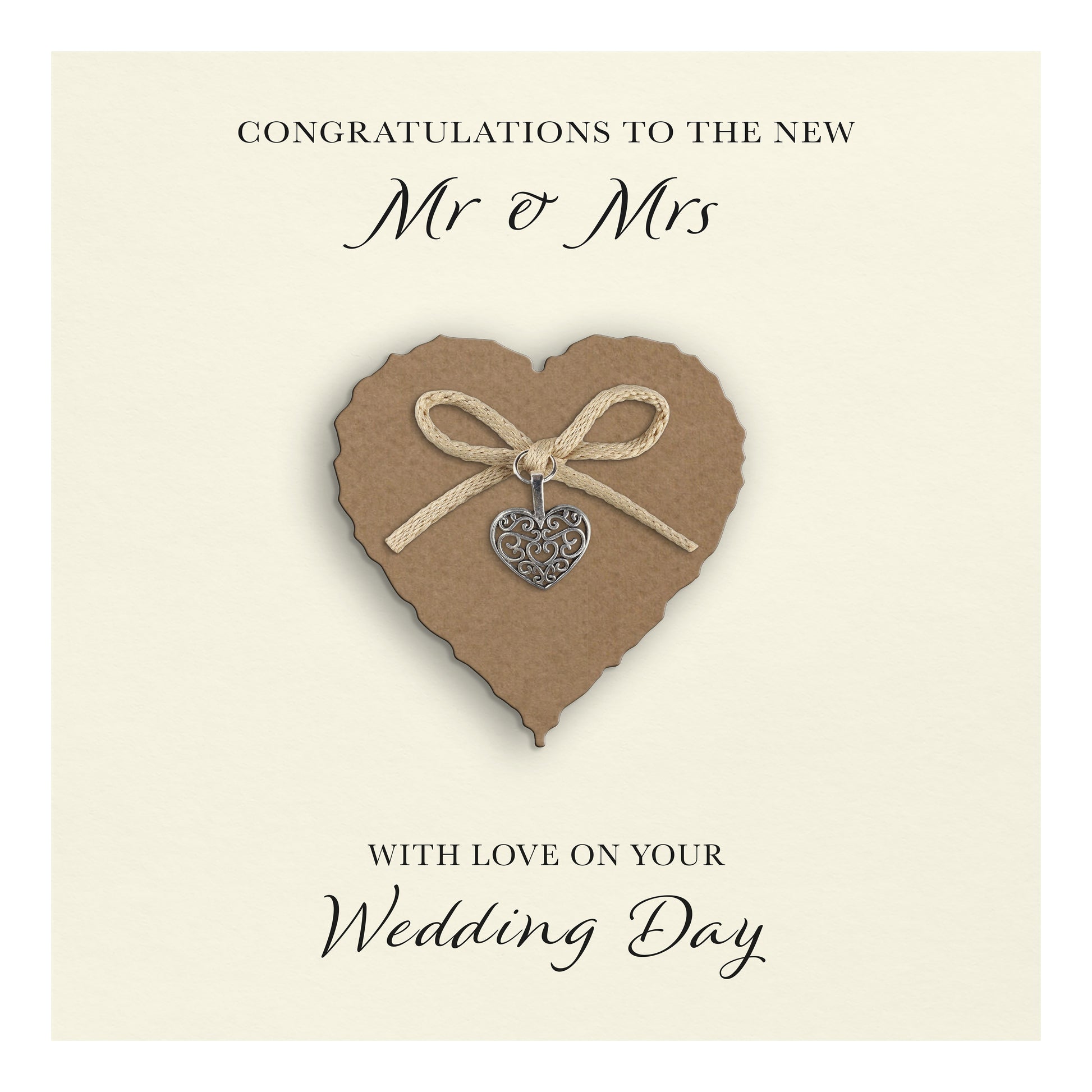 Wedding Day Card (Heart Charm & Bow) - Kraft Heart / Ivory Cardstock
