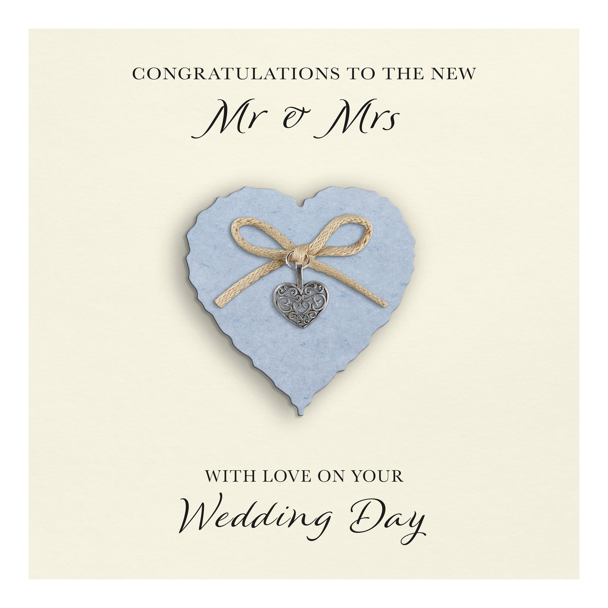 Wedding Day Card (Heart Charm & Bow) - Powder Blue Heart / Ivory Cardstock