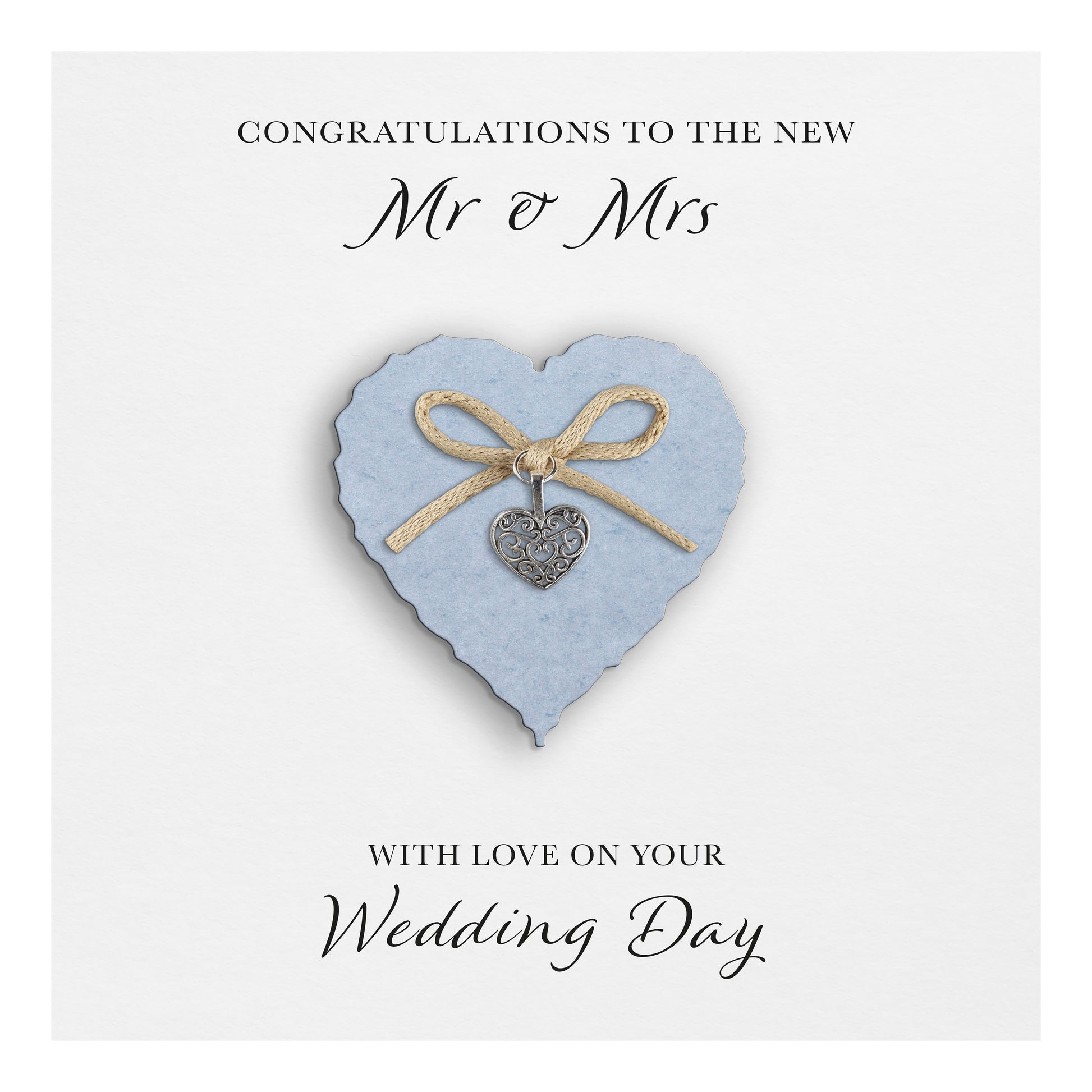 Wedding Day Card (Heart Charm & Bow) - Powder Blue Heart / White Cardstock