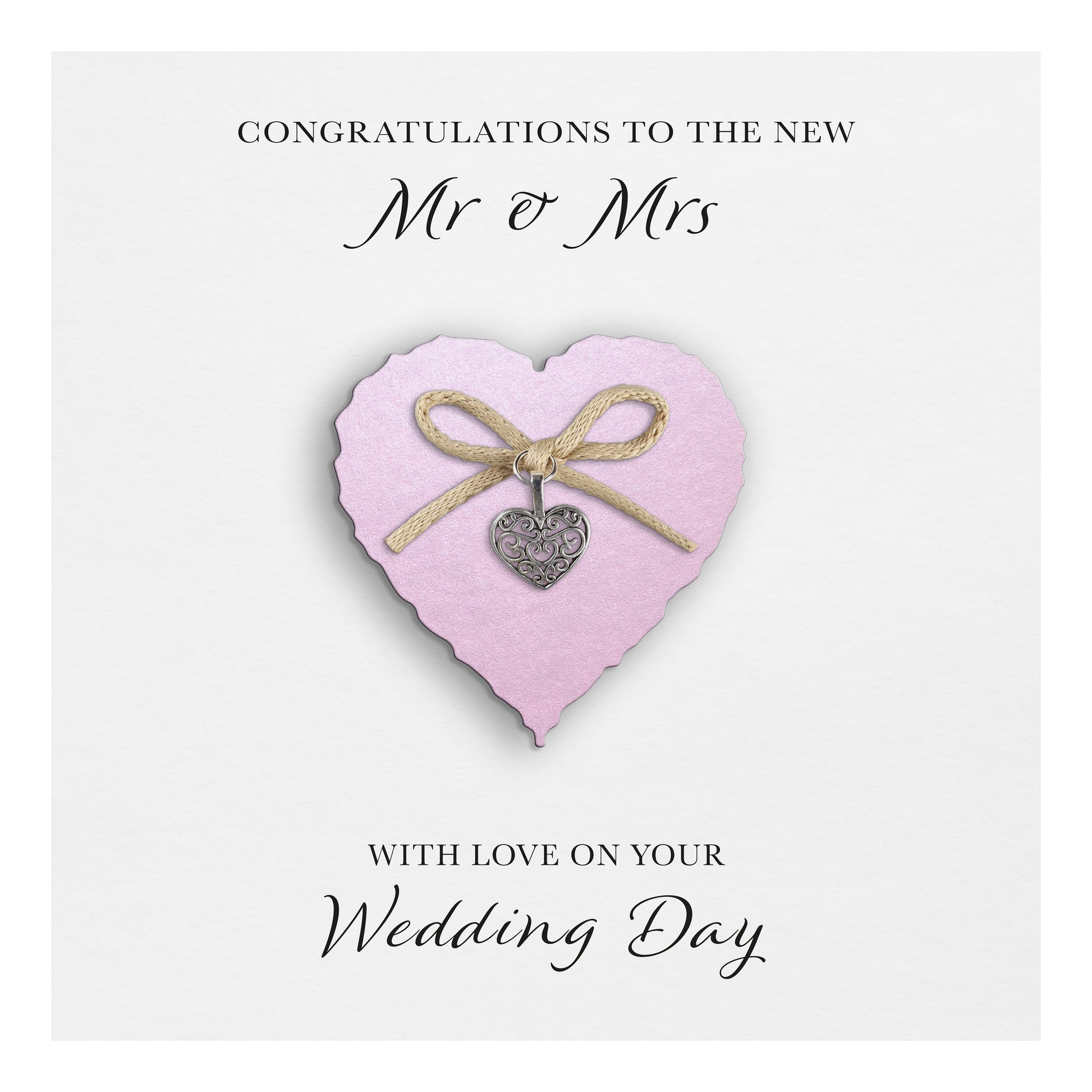 Wedding Day Card (Heart Charm & Bow) - Powder Pink Heart / White Cardstock