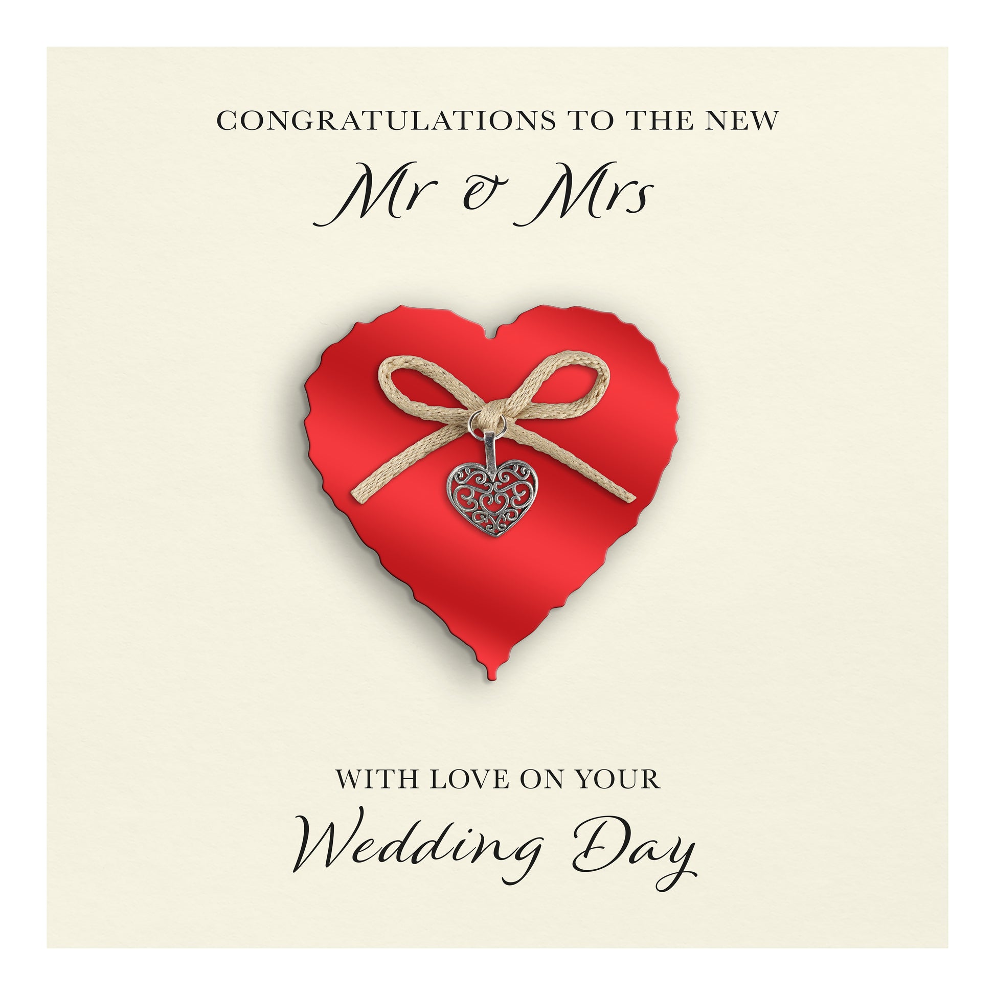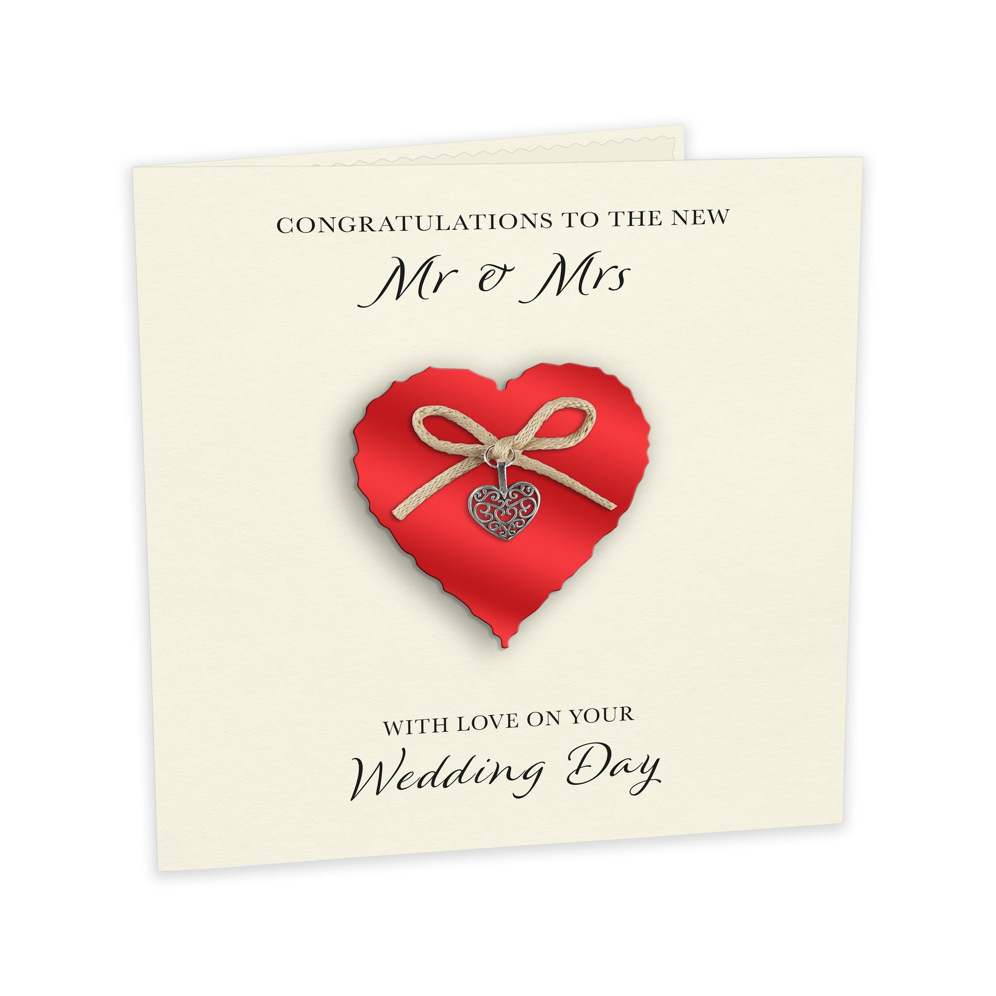 Wedding Day Card (Heart Charm & Bow) - Ruby Heart / Ivory Cardstock