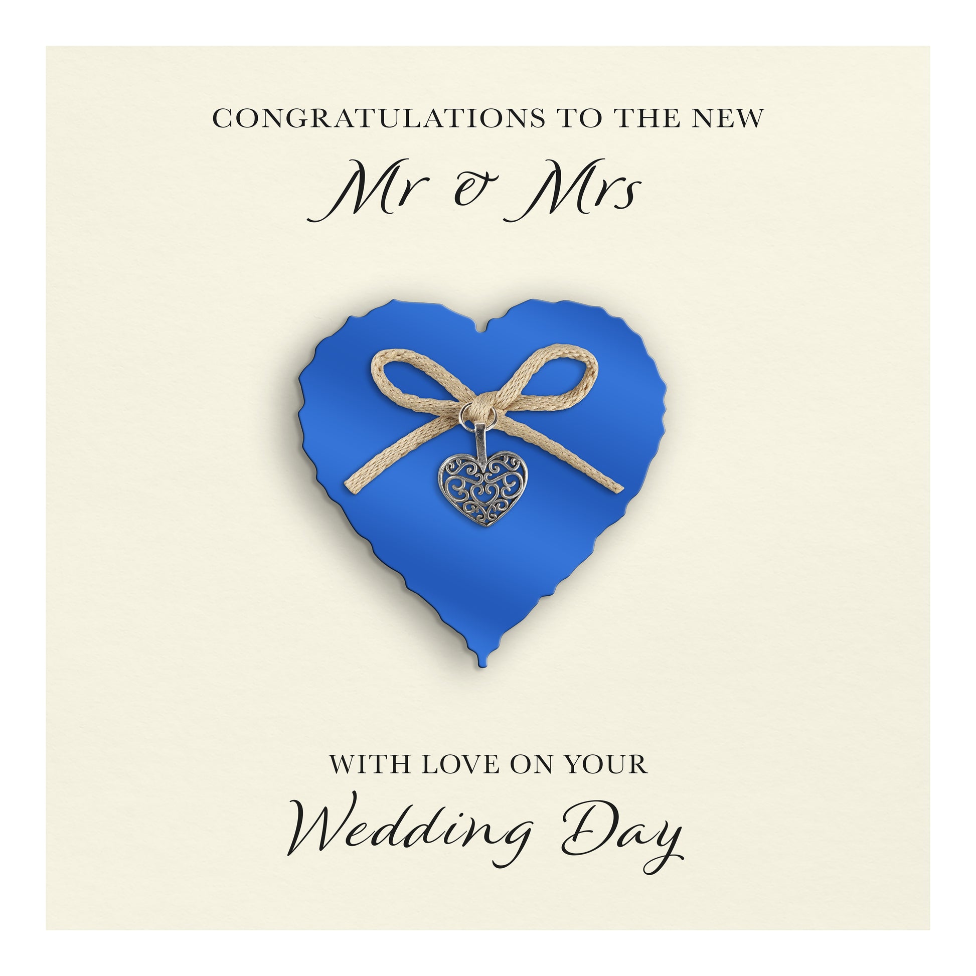 Wedding Day Card (Heart Charm & Bow) - Sapphire Heart / Ivory Cardstock
